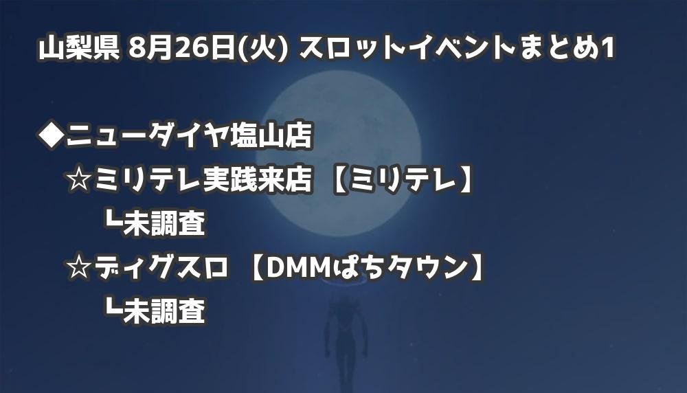 【山梨県】8月26日(火) パチンコホールイベント取材まとめ記事です。