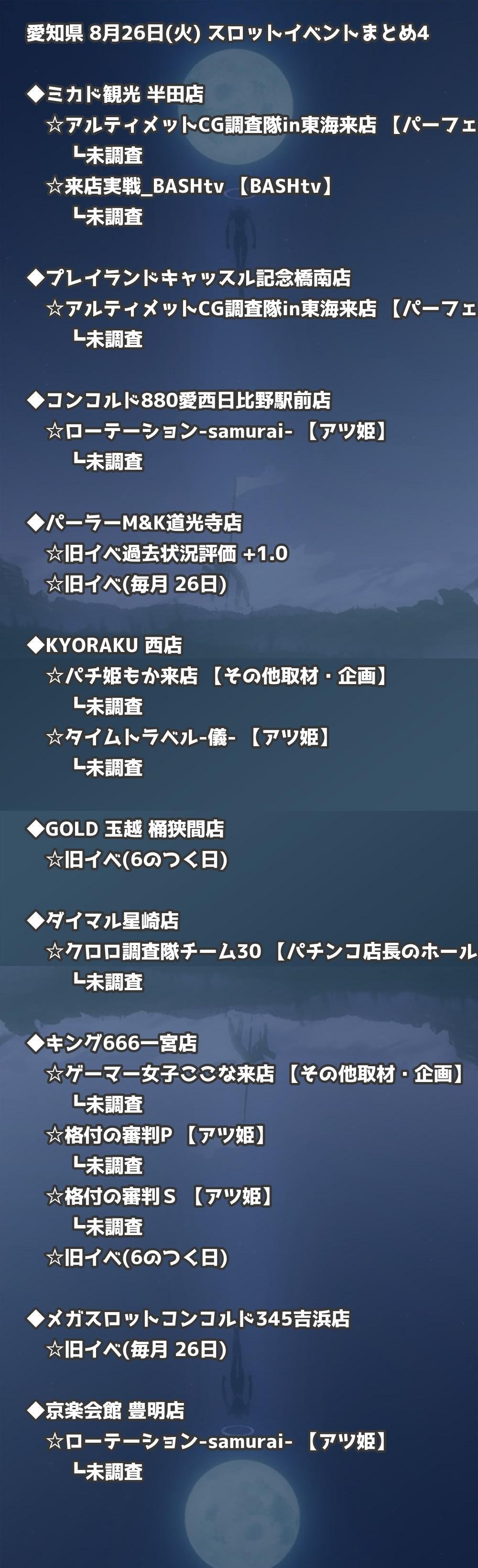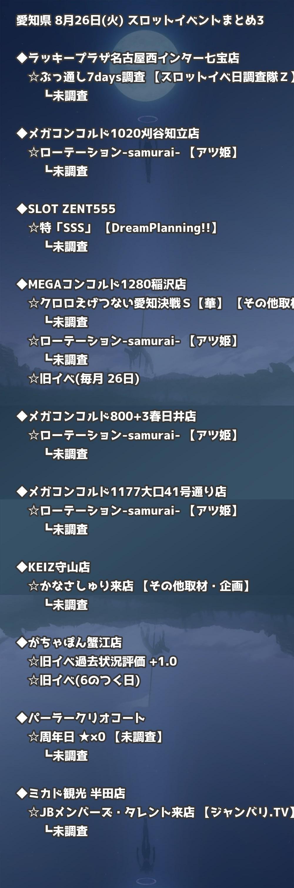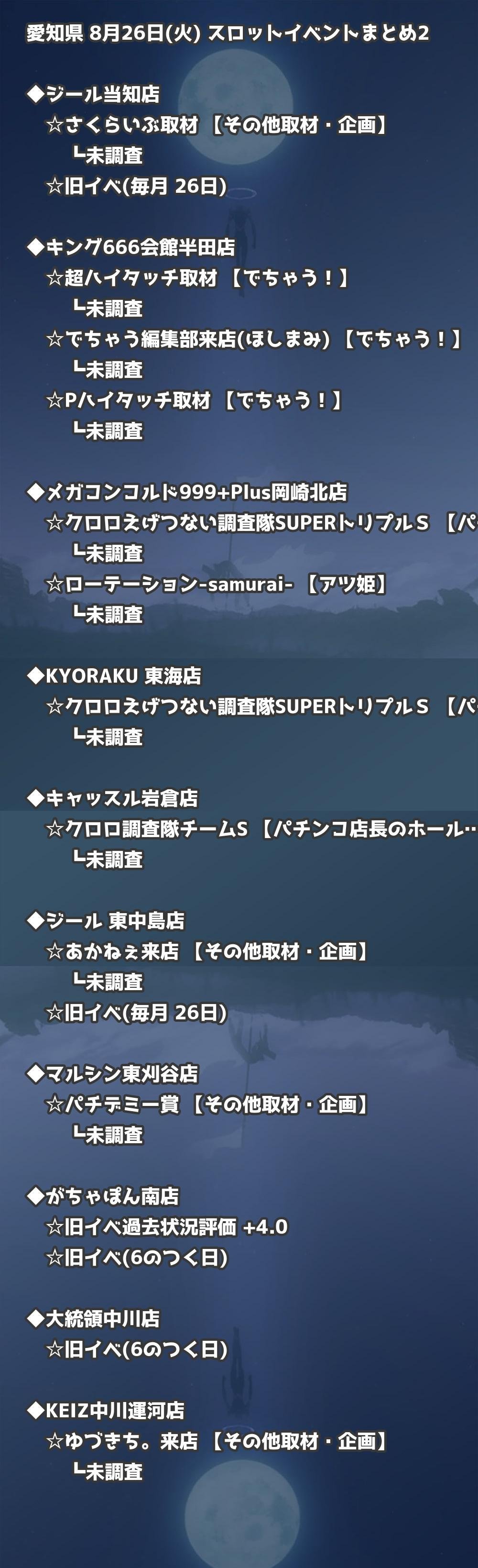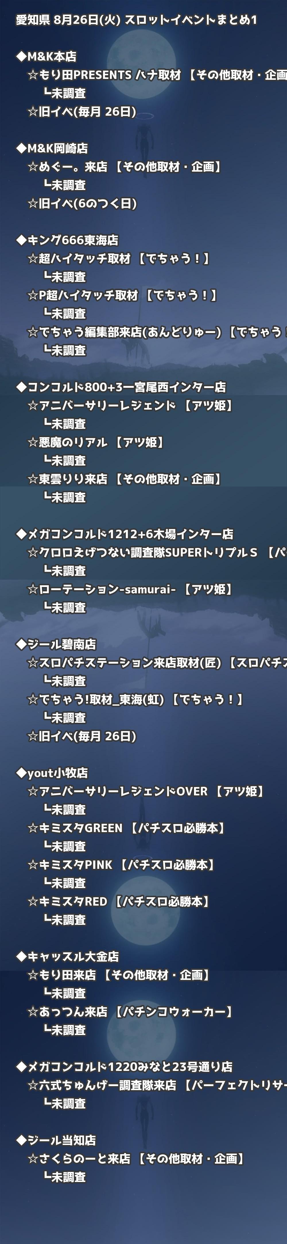 📊 愛知県 8月26日(火) 勝てるパチンコ・スロット取材店舗一覧|おすすめ順