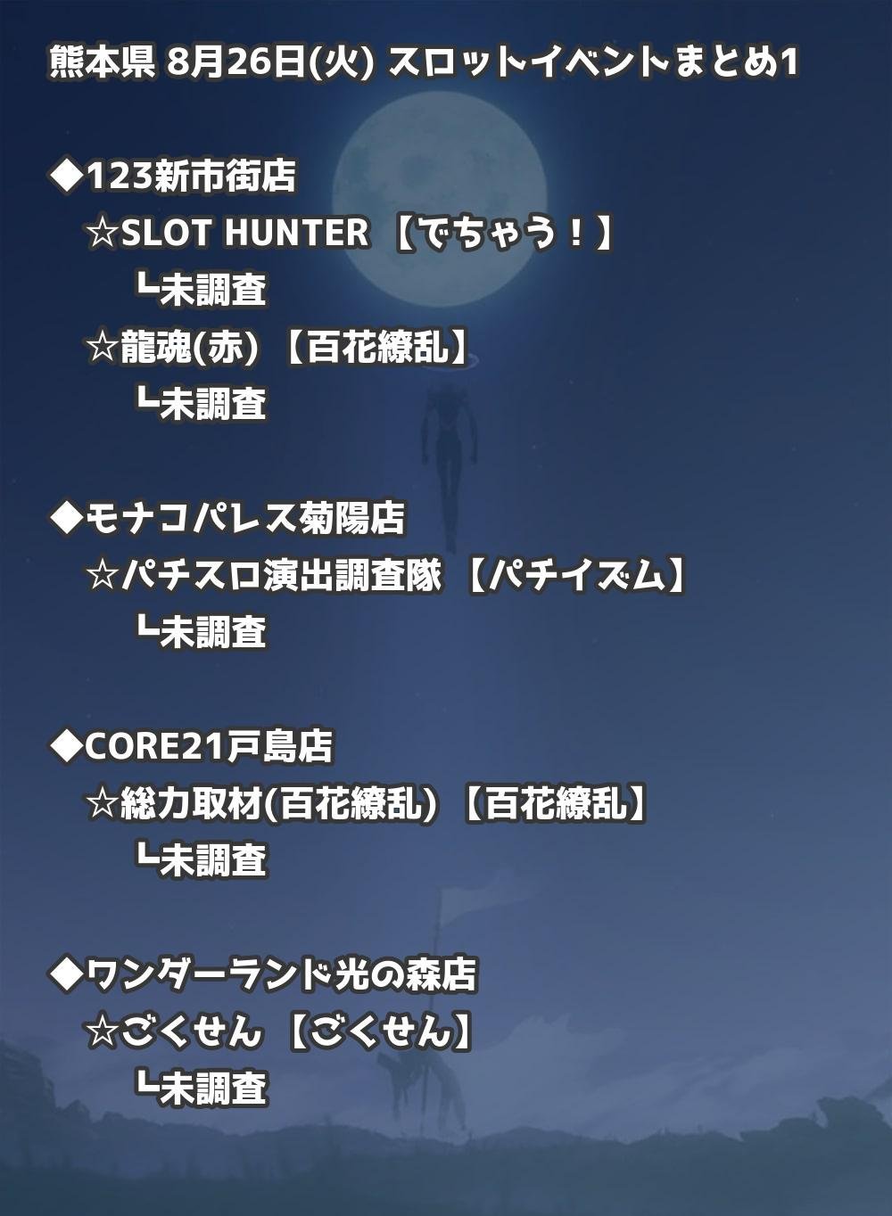 【熊本県】8月26日(火) パチンコホールイベント取材まとめ記事です。
