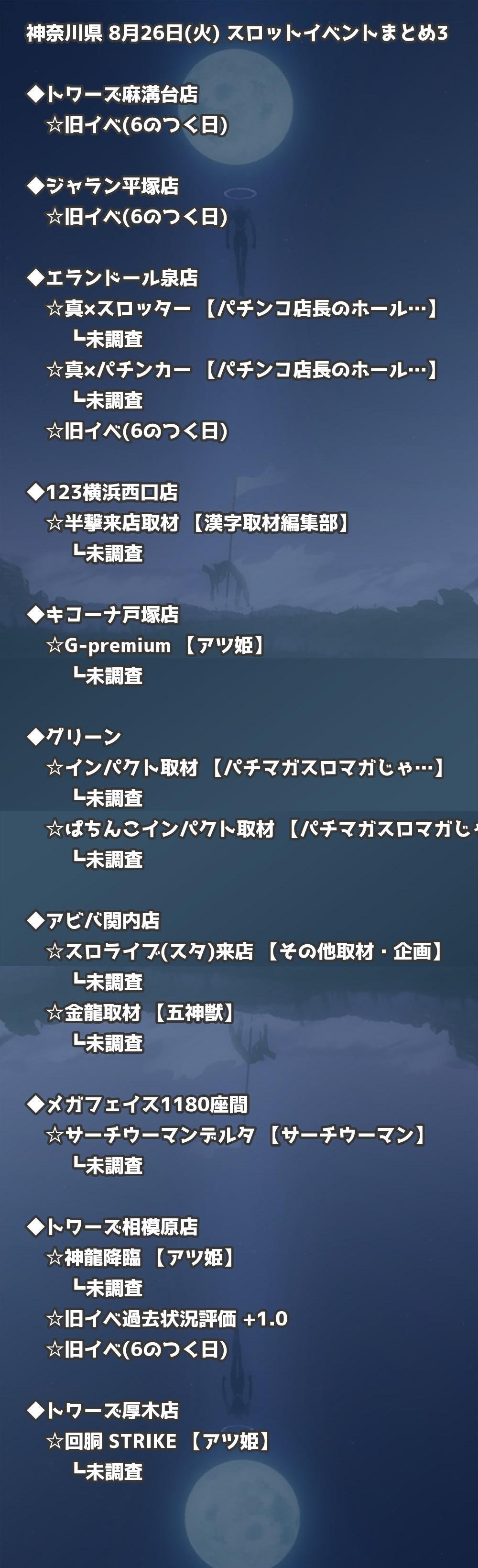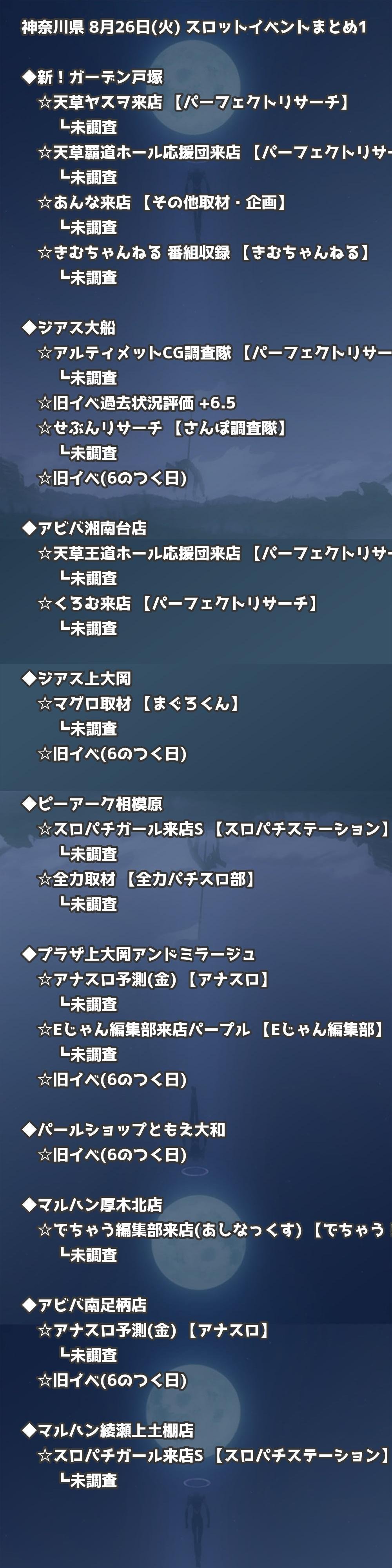 📊 神奈川県 8月26日(火) 勝てるパチンコ・スロット取材店舗一覧|おすすめ順