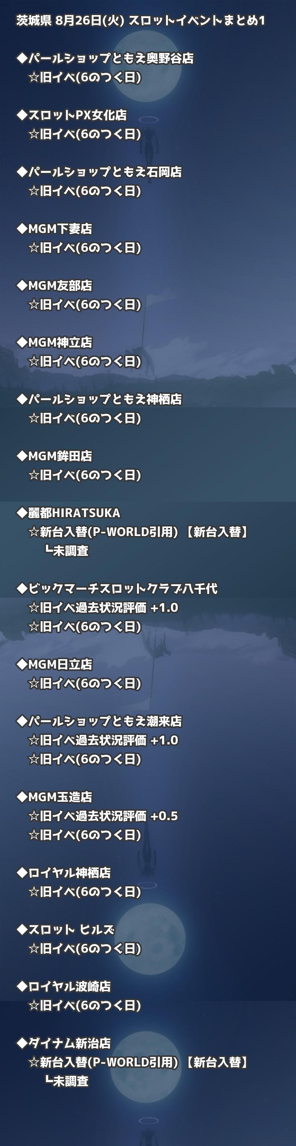 【茨城県】8月26日(火) パチンコホールイベント取材まとめ記事です。