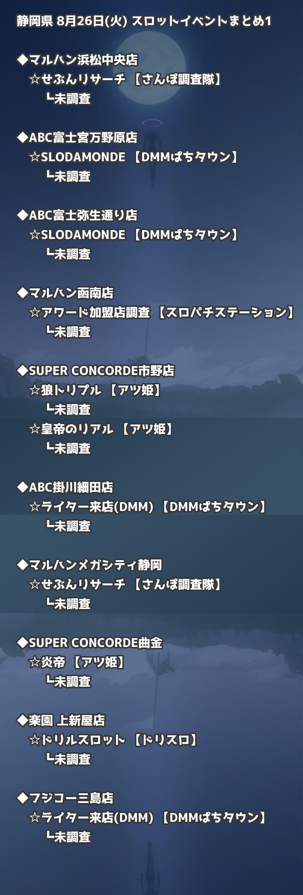 📊 静岡県 8月26日(火) 勝てるパチンコ・スロット取材店舗一覧|おすすめ順