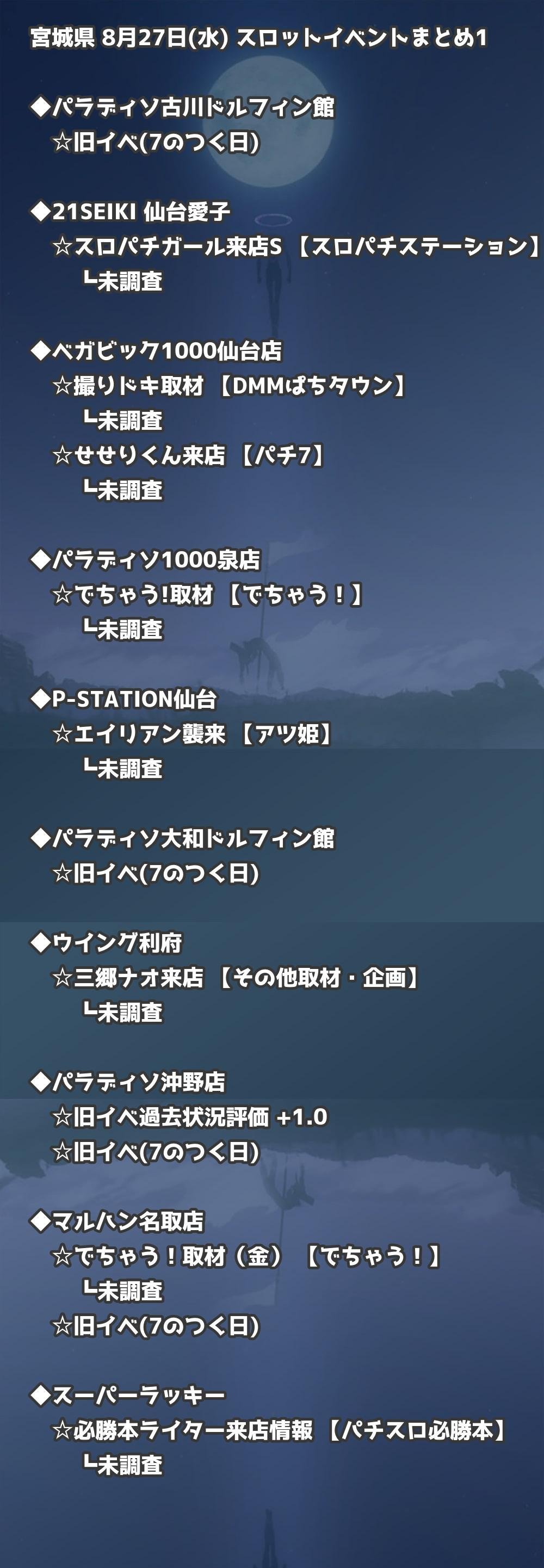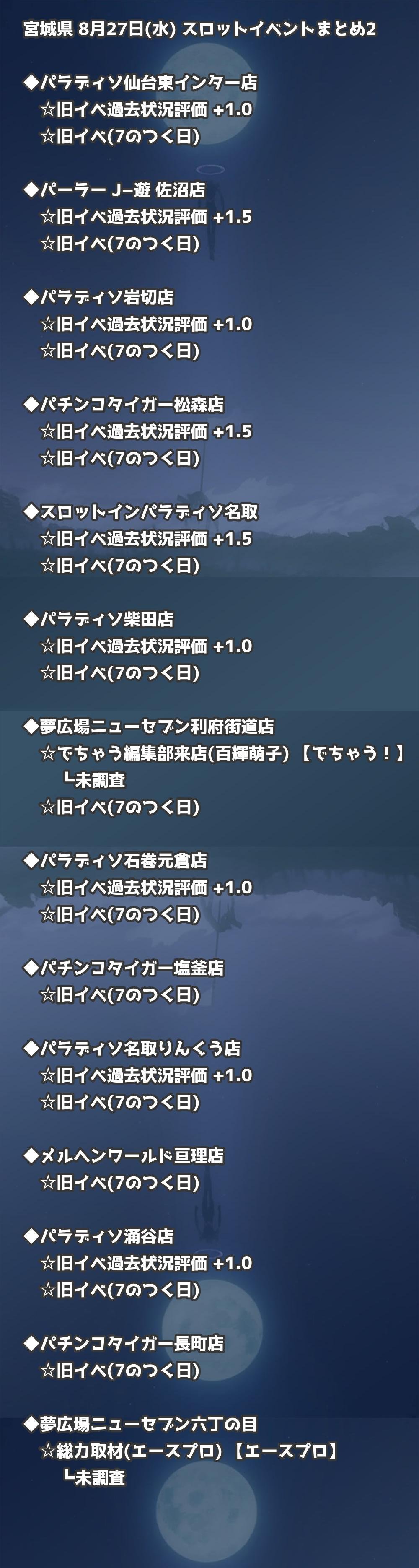 【宮城県】8月27日(水) パチンコホールイベント取材まとめ記事です。
