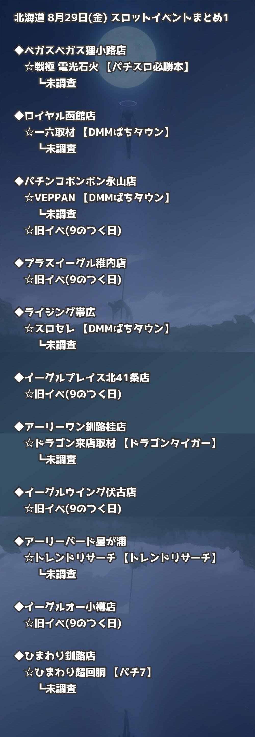【北海道】8月29日(金) パチンコホールイベント取材まとめ記事です。