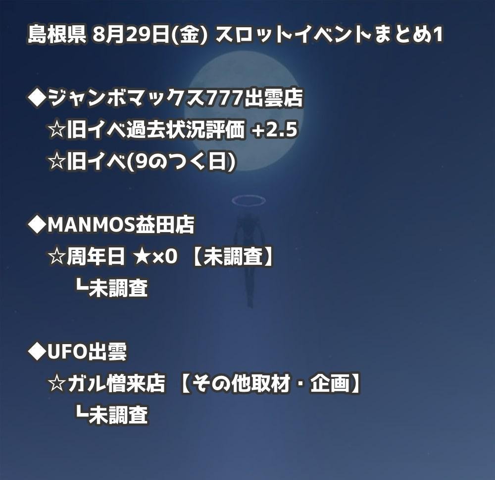 【島根県】8月29日(金) パチンコホールイベント取材まとめ記事です。