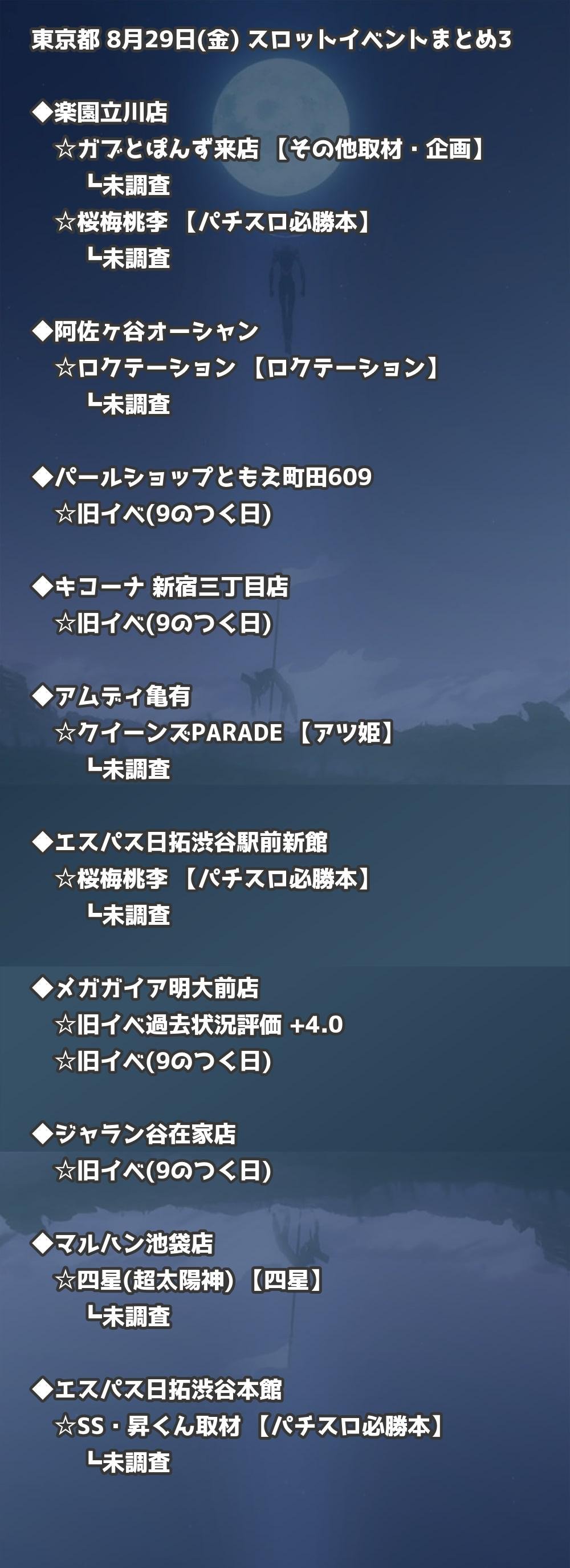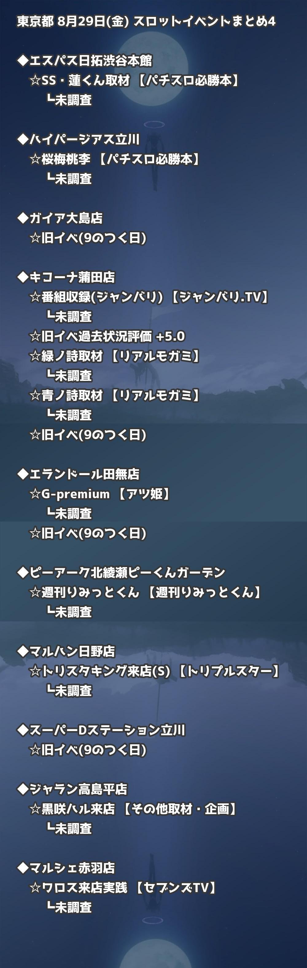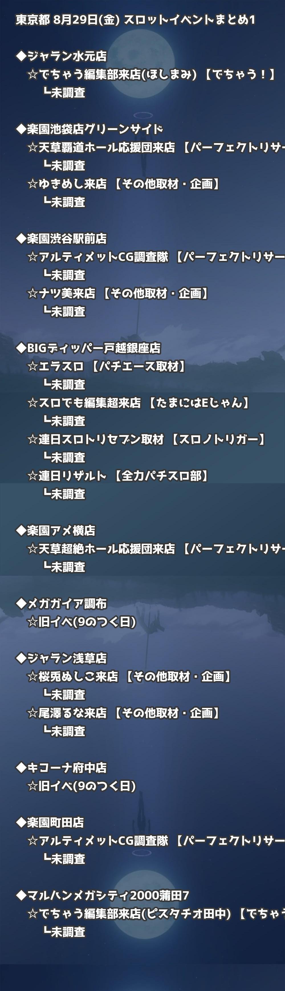 【東京都】8月29日(金) パチンコホールイベント取材まとめ記事です。