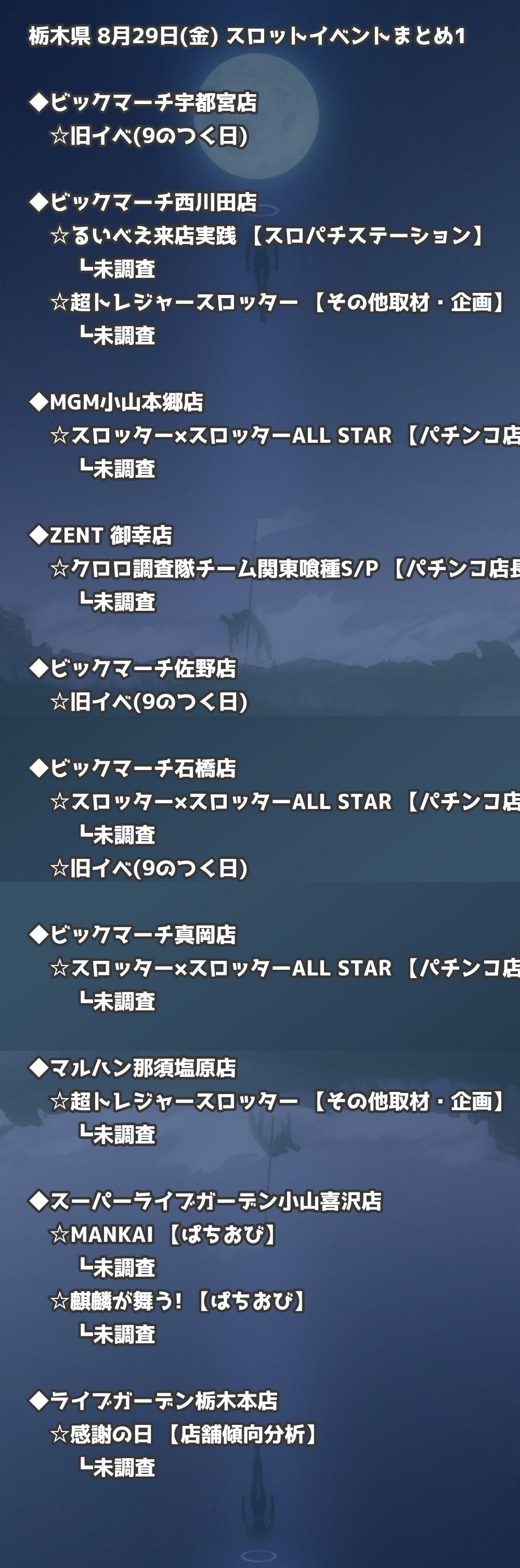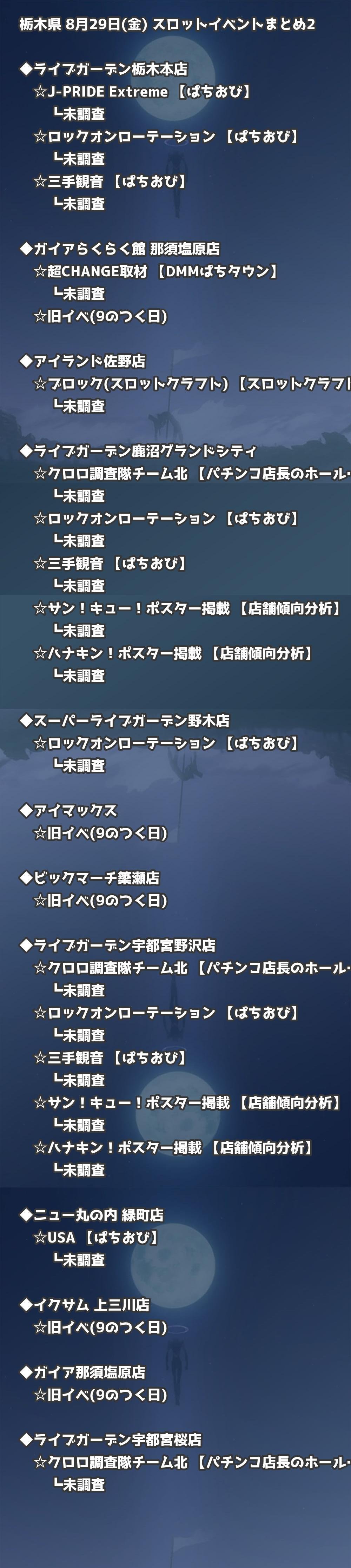 【栃木県】8月29日(金) パチンコホールイベント取材まとめ記事です。