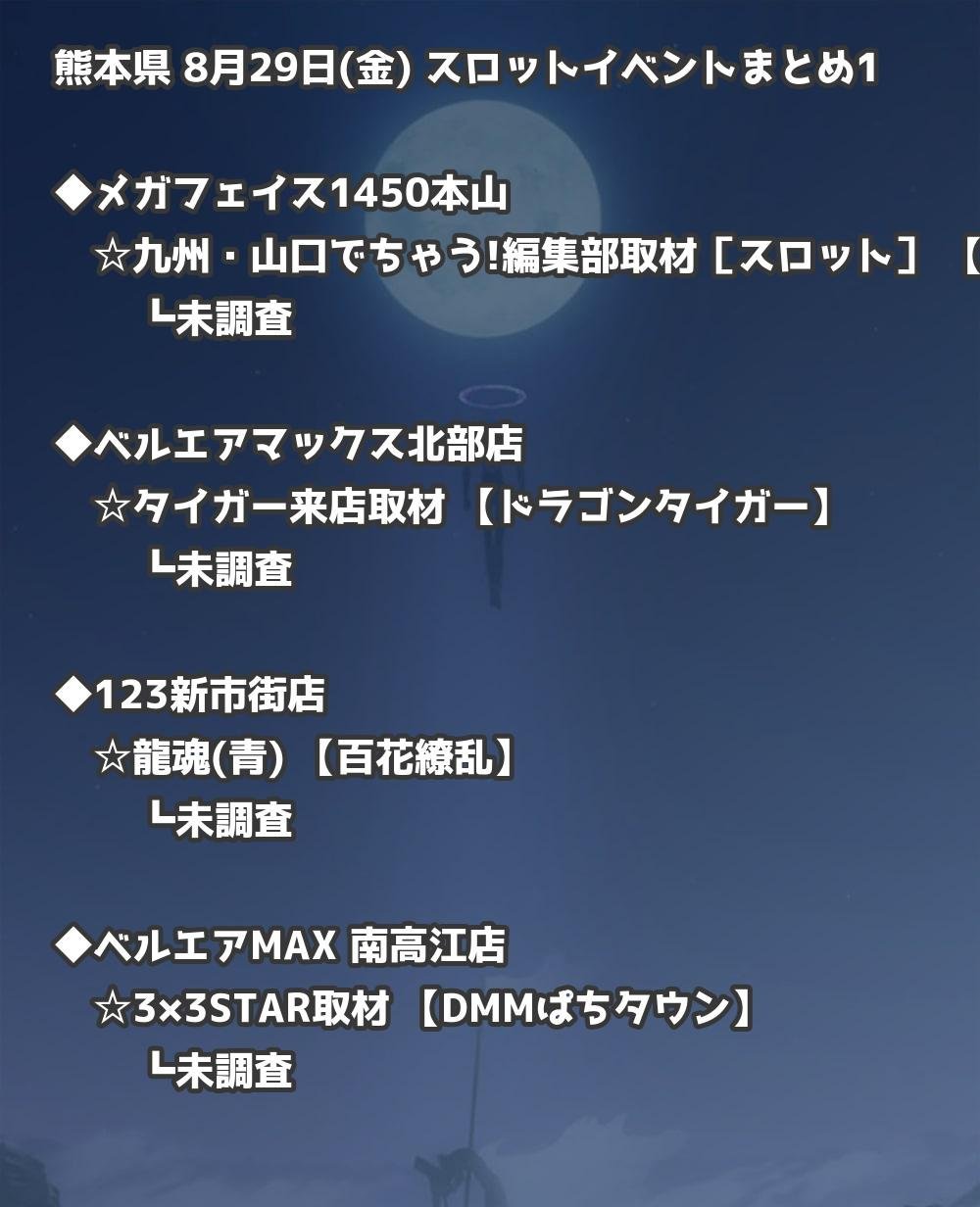 【熊本県】8月29日(金) パチンコホールイベント取材まとめ記事です。