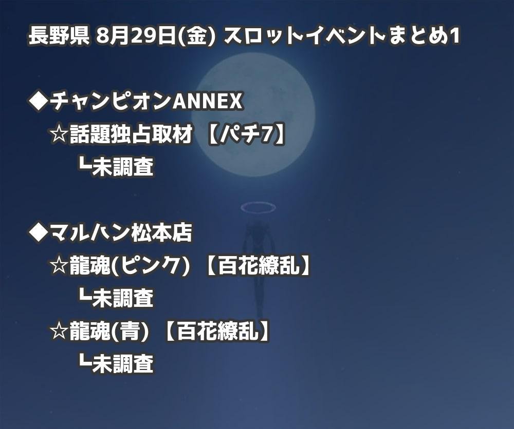 【長野県】8月29日(金) パチンコホールイベント取材まとめ記事です。