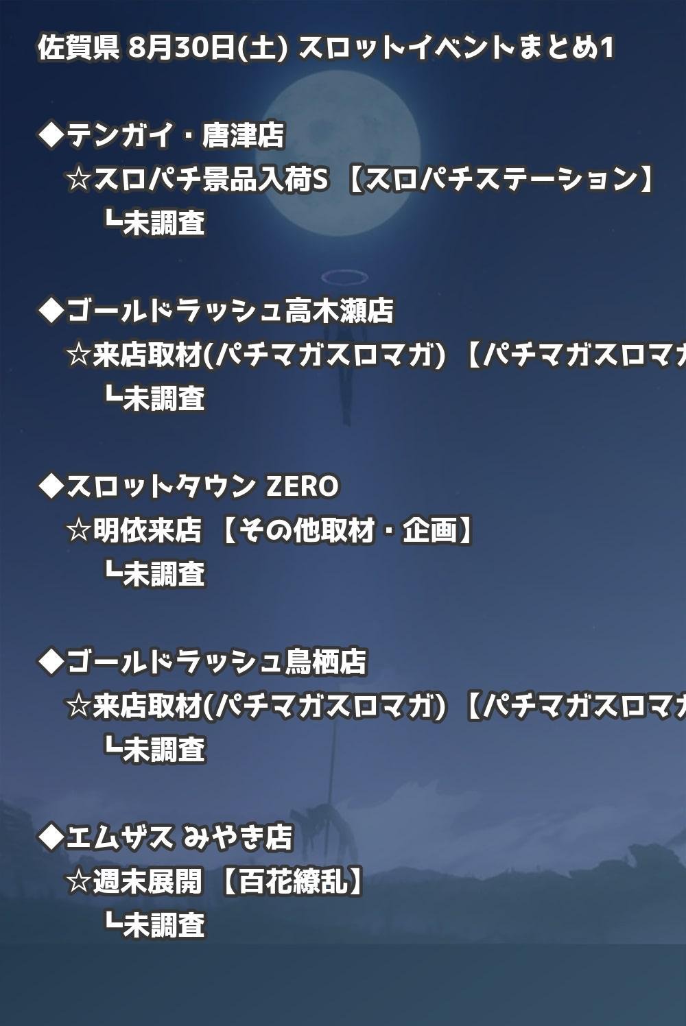 📊 佐賀県 8月30日(土) 勝てるパチンコ・スロット取材店舗一覧|おすすめ順