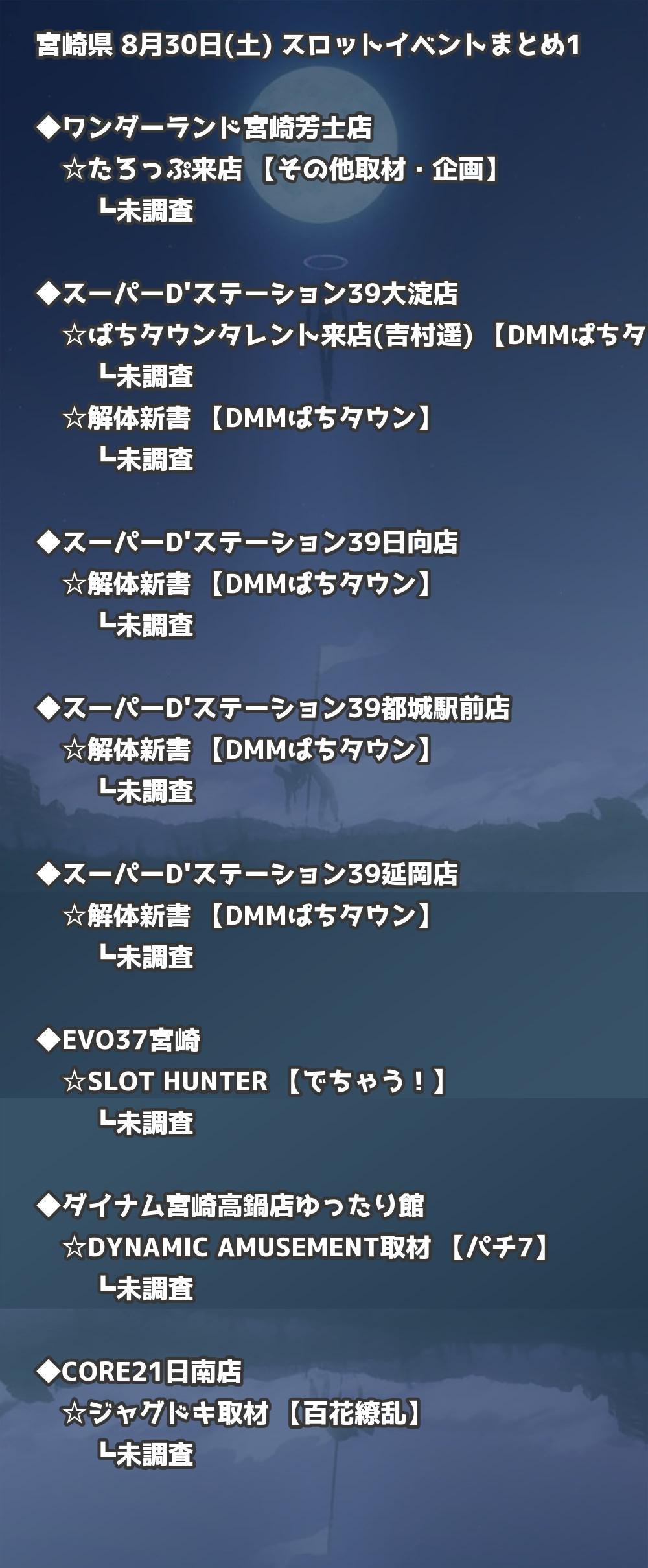 【宮崎県】8月30日(土) パチンコホールイベント取材まとめ記事です。