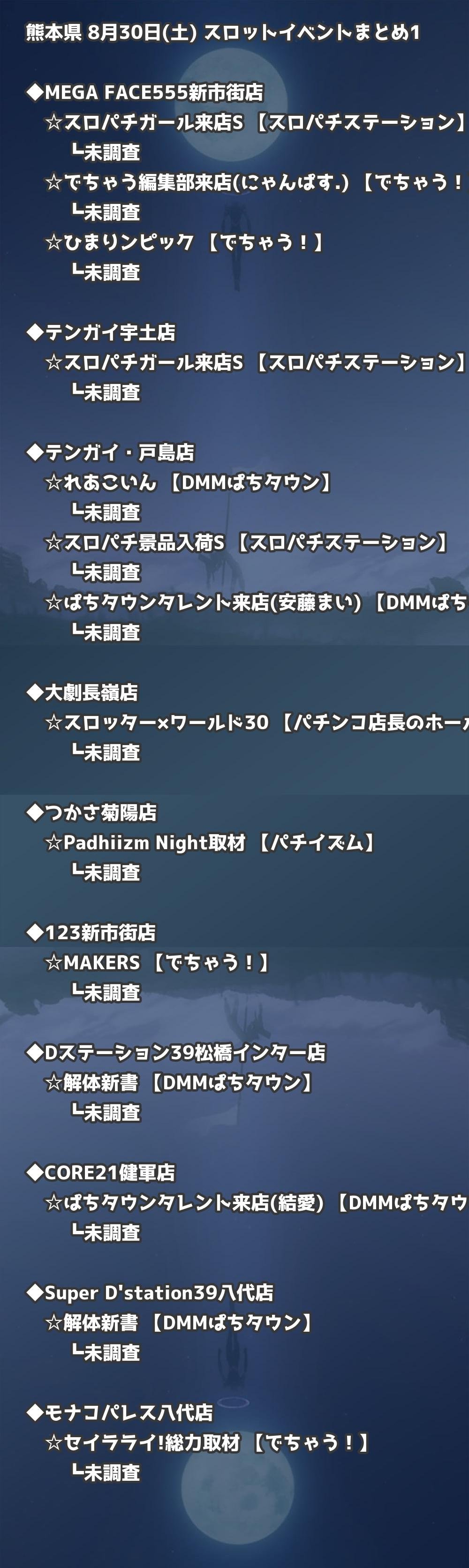 【熊本県】8月30日(土) パチンコホールイベント取材まとめ記事です。
