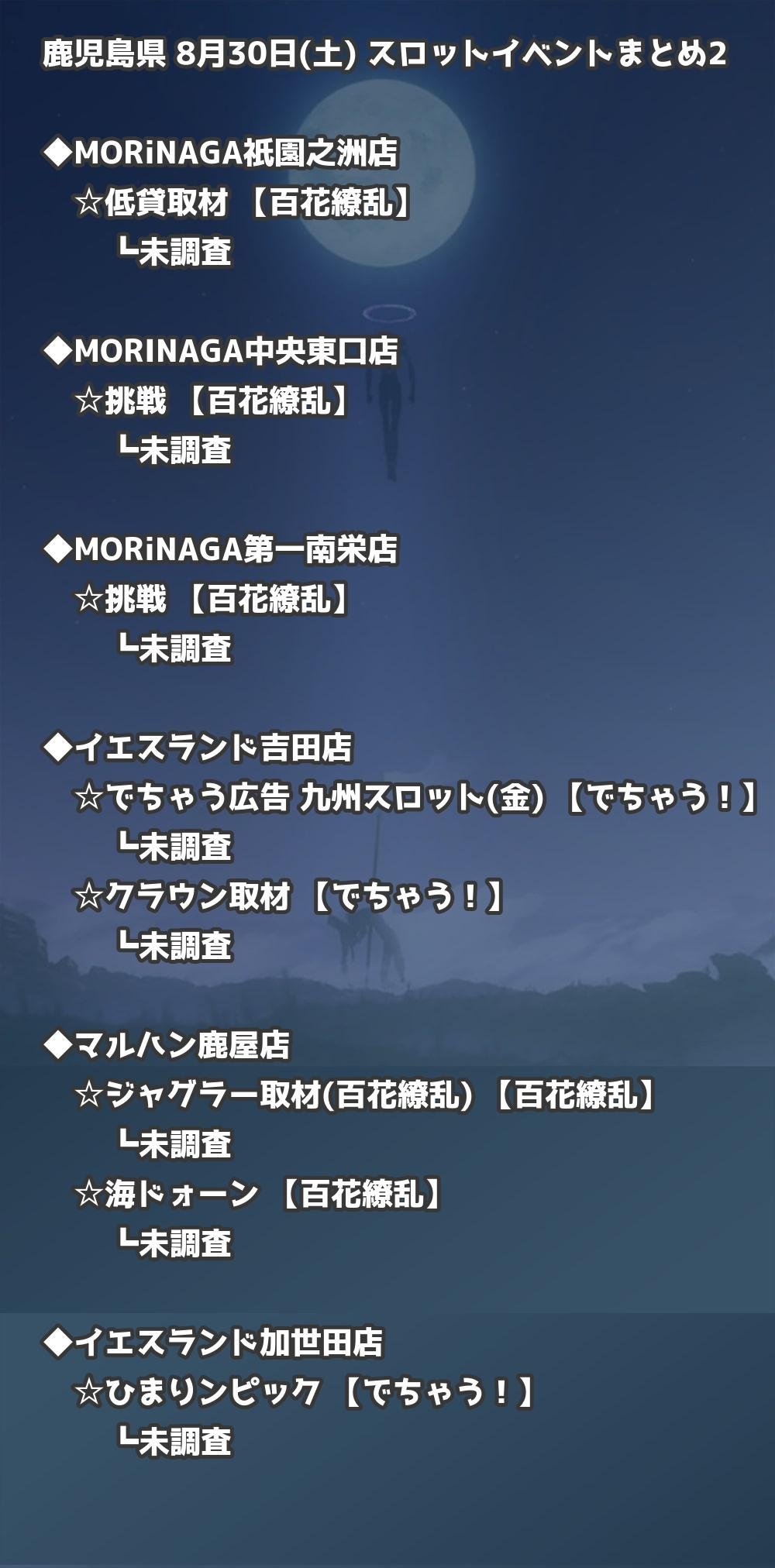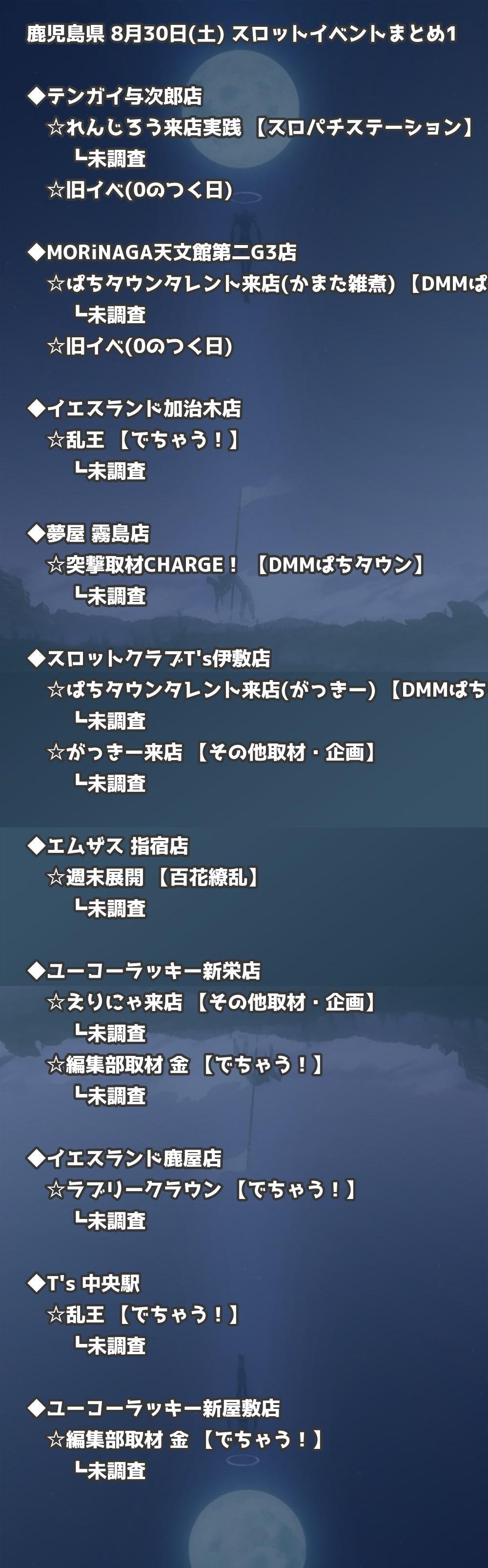 📊 鹿児島県 8月30日(土) 勝てるパチンコ・スロット取材店舗一覧|おすすめ順