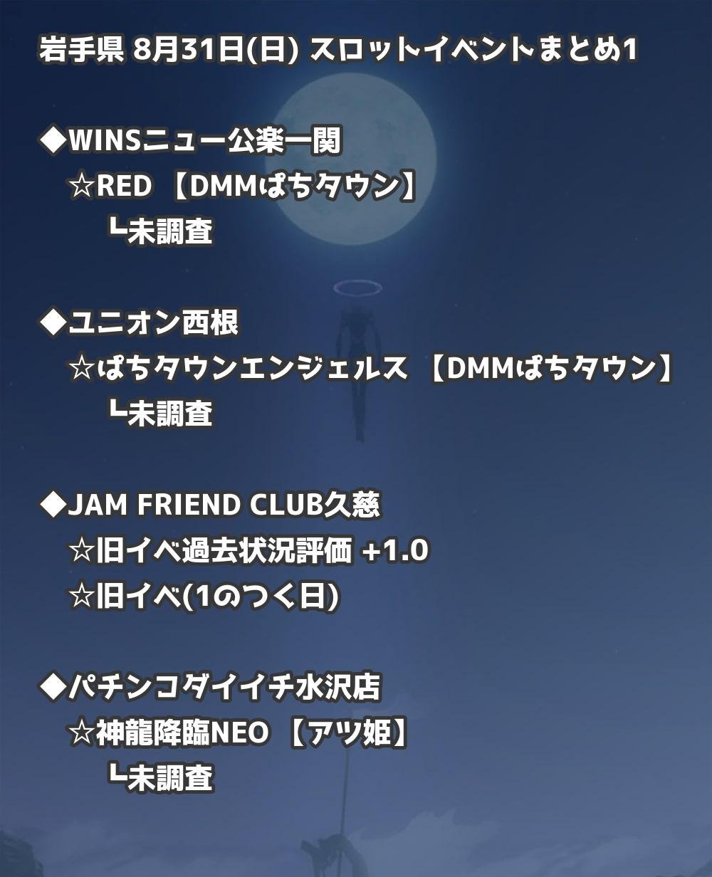 【岩手県】8月31日(日) パチンコホールイベント取材まとめ記事です。