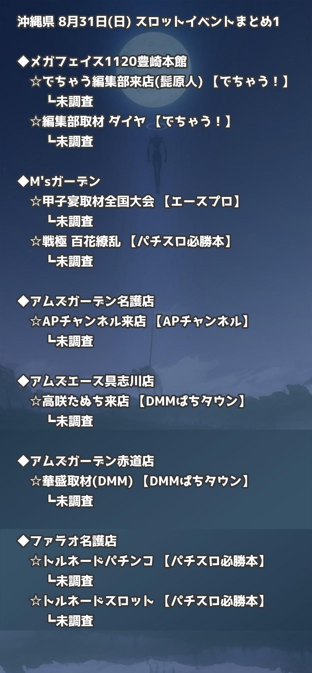 【沖縄県】8月31日(日) パチンコホールイベント取材まとめ記事です。
