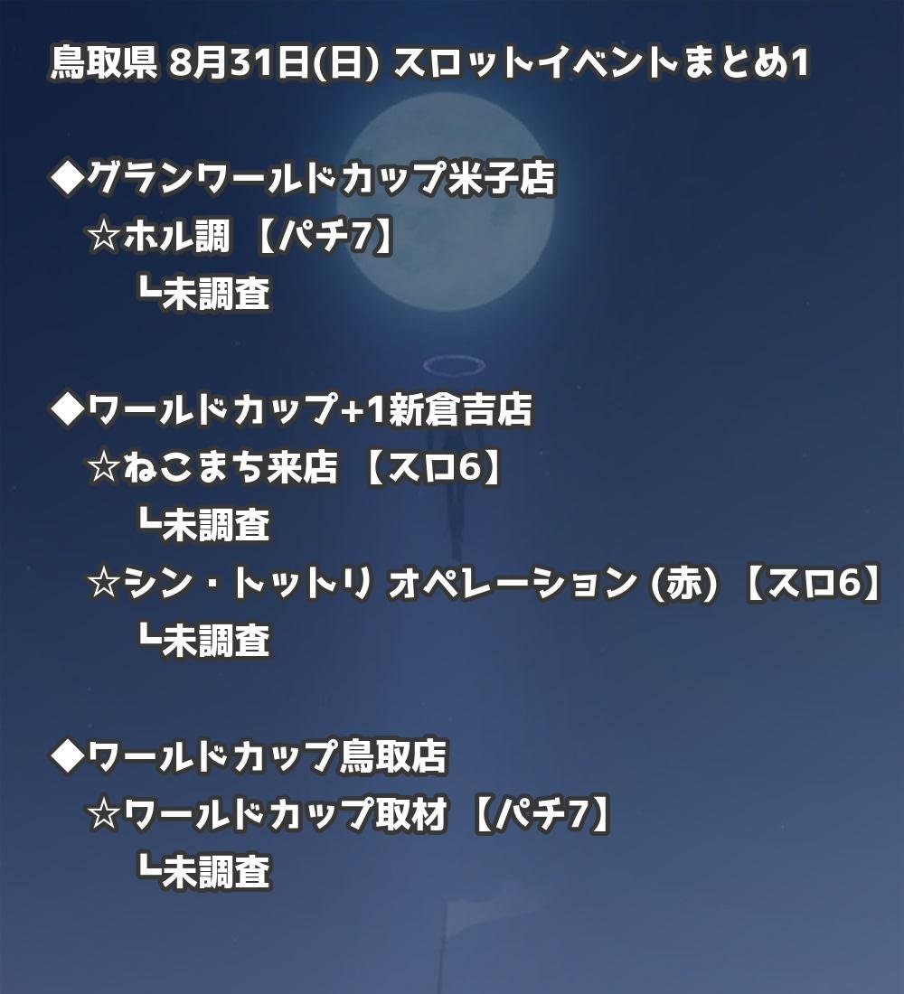 📊 鳥取県 8月31日(日) 勝てるパチンコ・スロット取材店舗一覧|おすすめ順