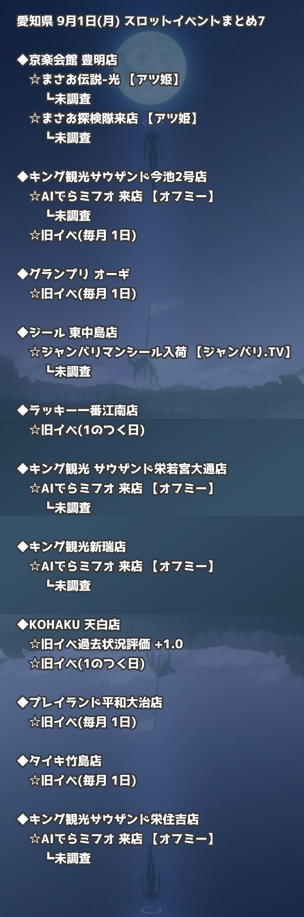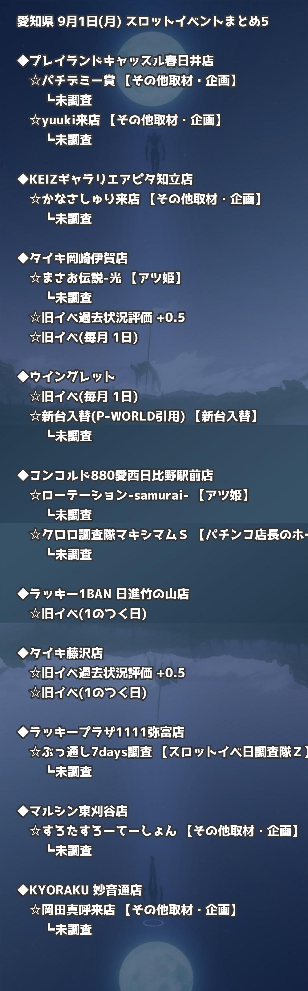 📊 愛知県 9月1日(月) 勝てるパチンコ・スロット取材店舗一覧|おすすめ順