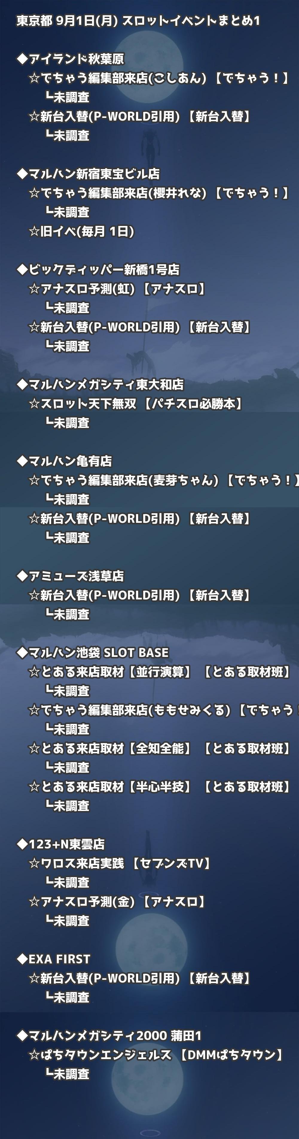 📊 東京都 9月1日(月) 勝てるパチンコ・スロット取材店舗一覧|おすすめ順