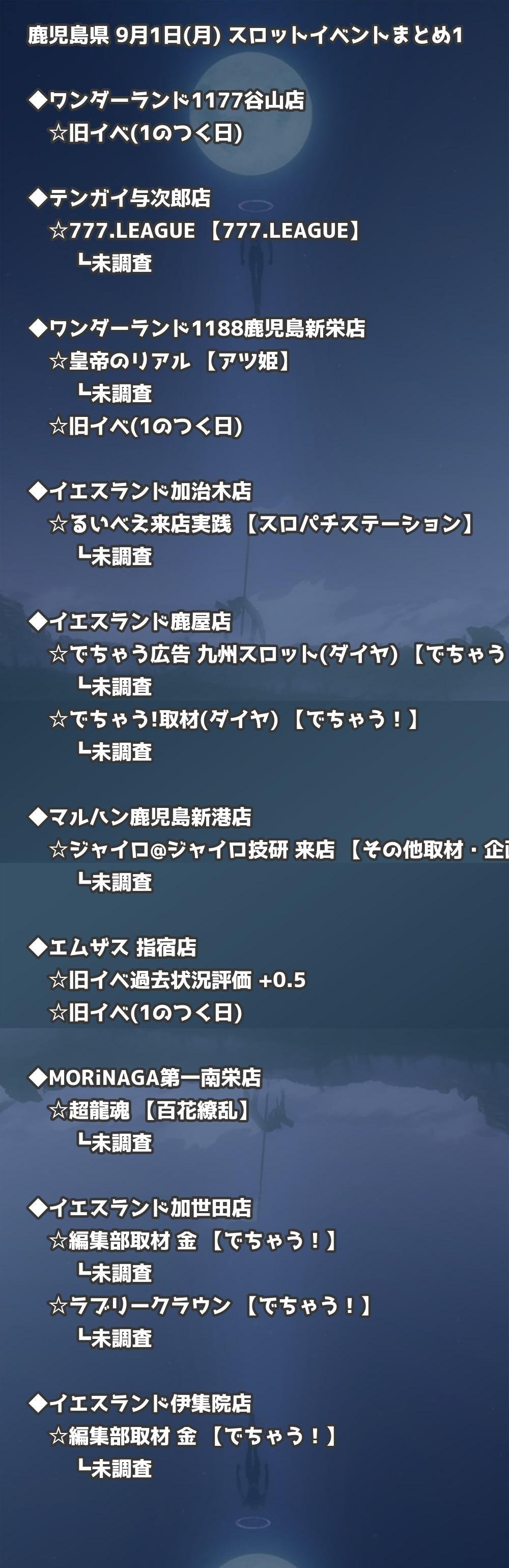 📊 鹿児島県 9月1日(月) 勝てるパチンコ・スロット取材店舗一覧|おすすめ順