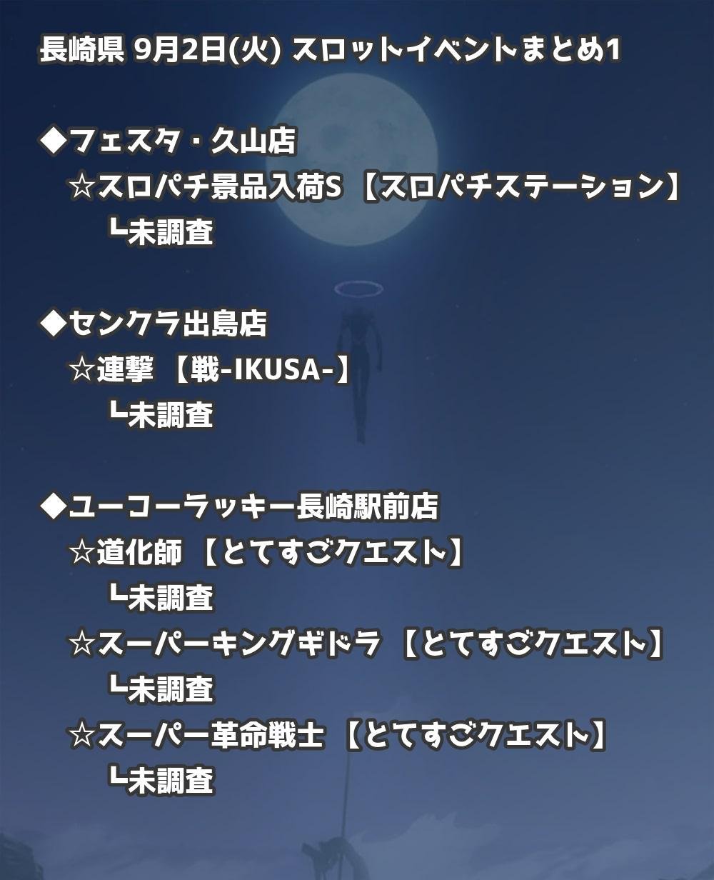 【長崎県】9月2日(火) パチンコホールイベント取材まとめ記事です。