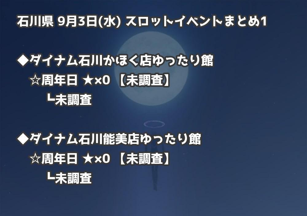 【石川県】9月3日(水) パチンコホールイベント取材まとめ記事です。