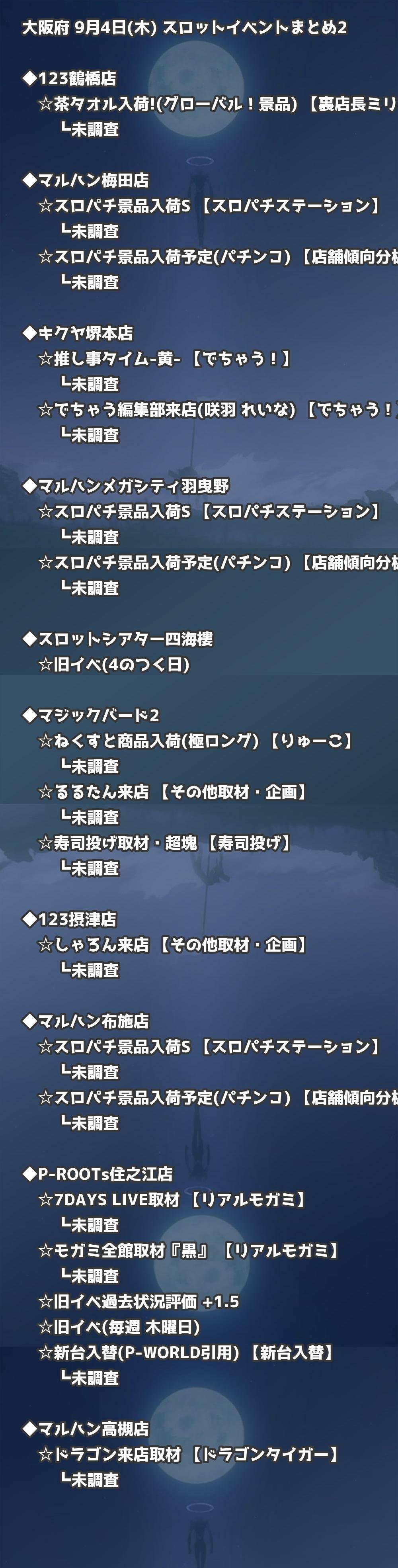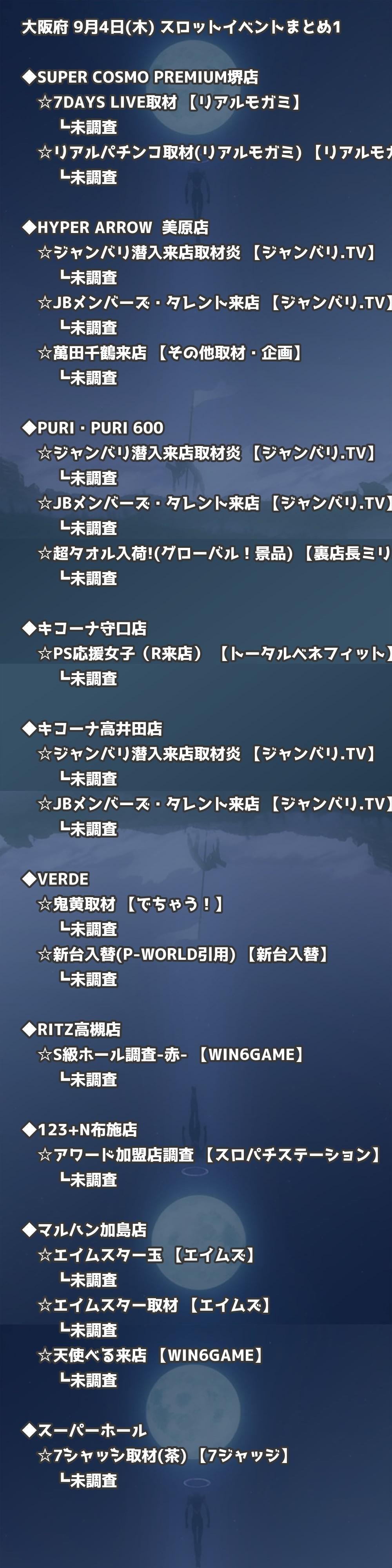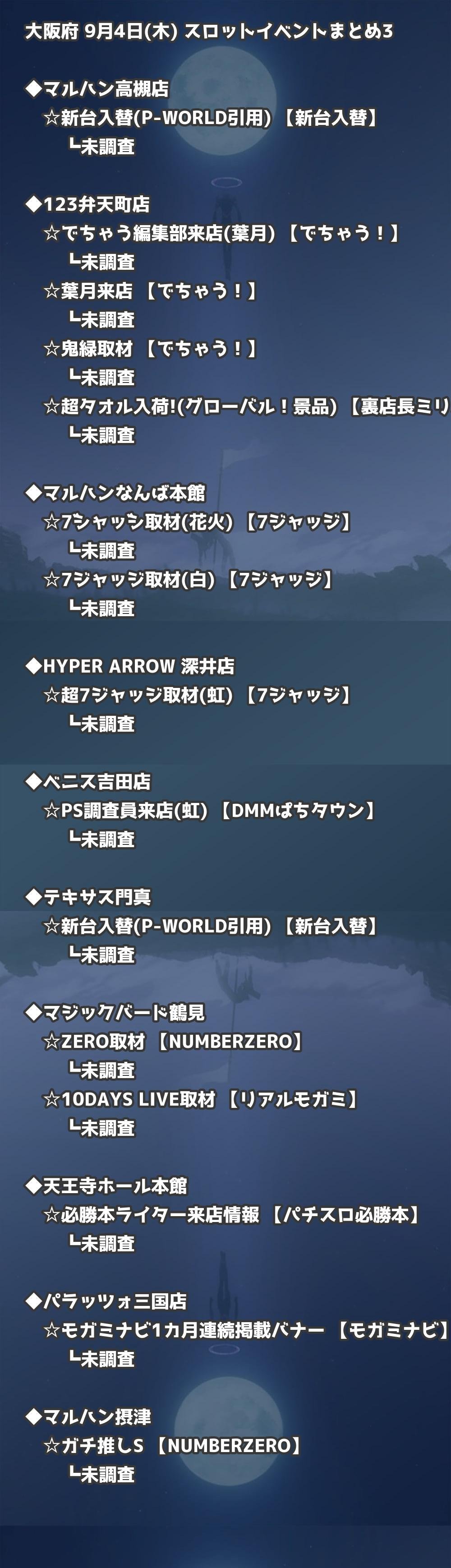 📊 大阪府 9月4日(木) 勝てるパチンコ・スロット取材店舗一覧|おすすめ順