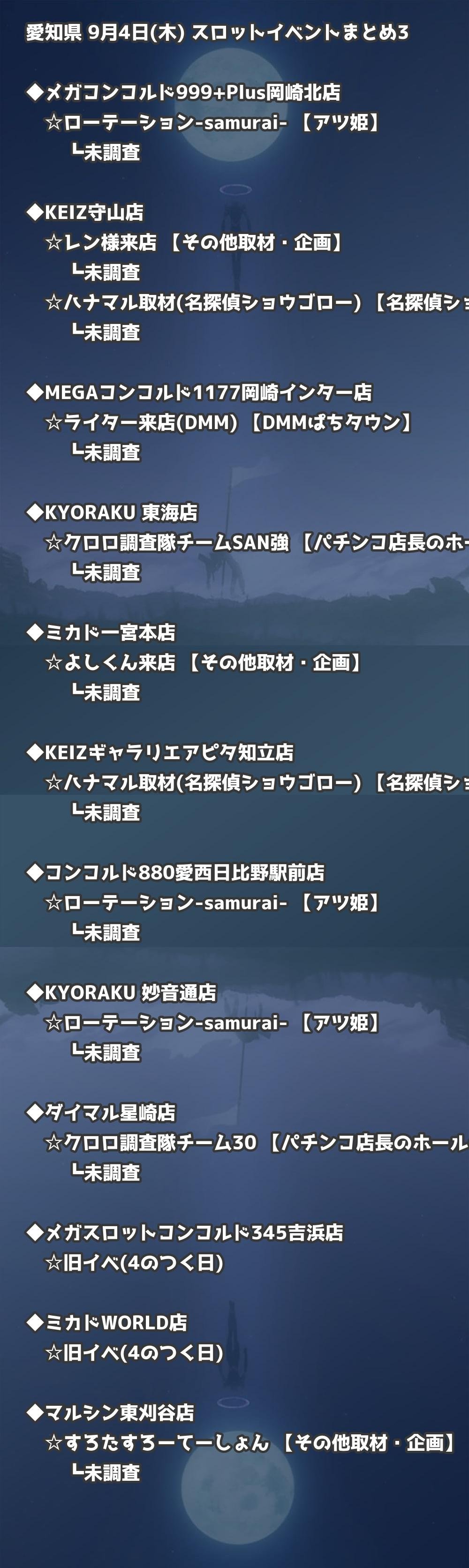 📊 愛知県 9月4日(木) 勝てるパチンコ・スロット取材店舗一覧|おすすめ順