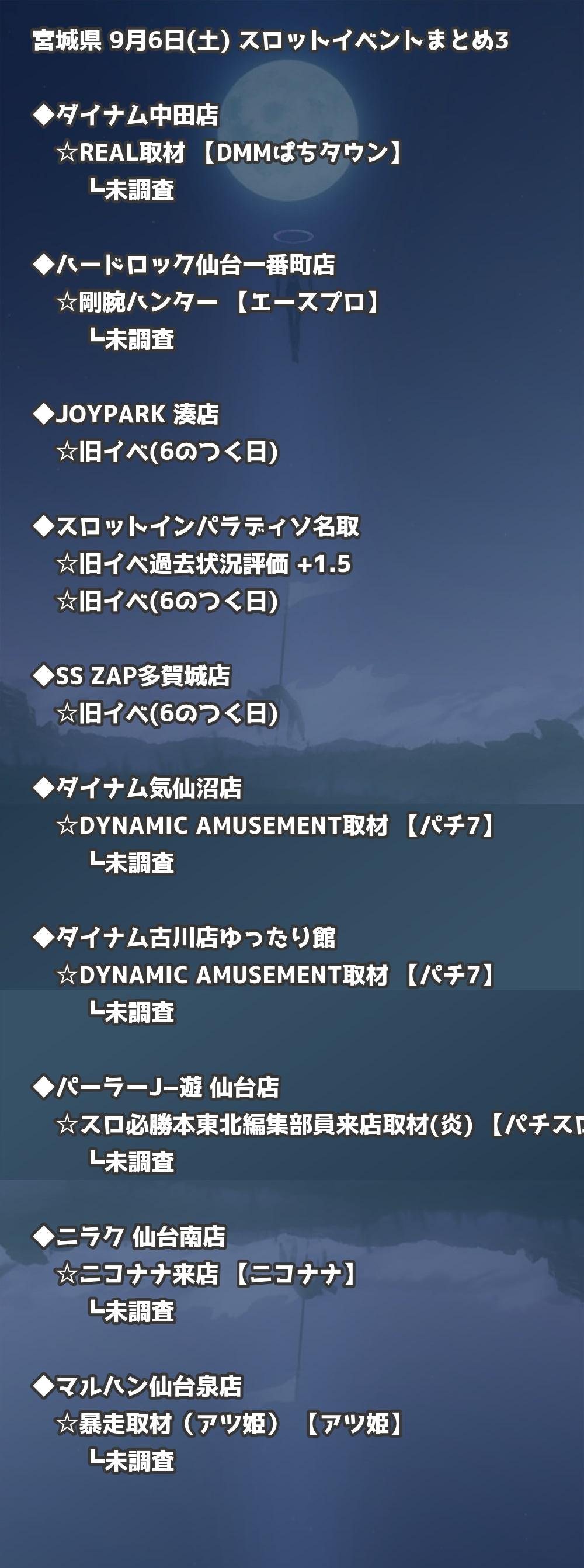 📊 宮城県 9月6日(土) 勝てるパチンコ・スロット取材店舗一覧|おすすめ順