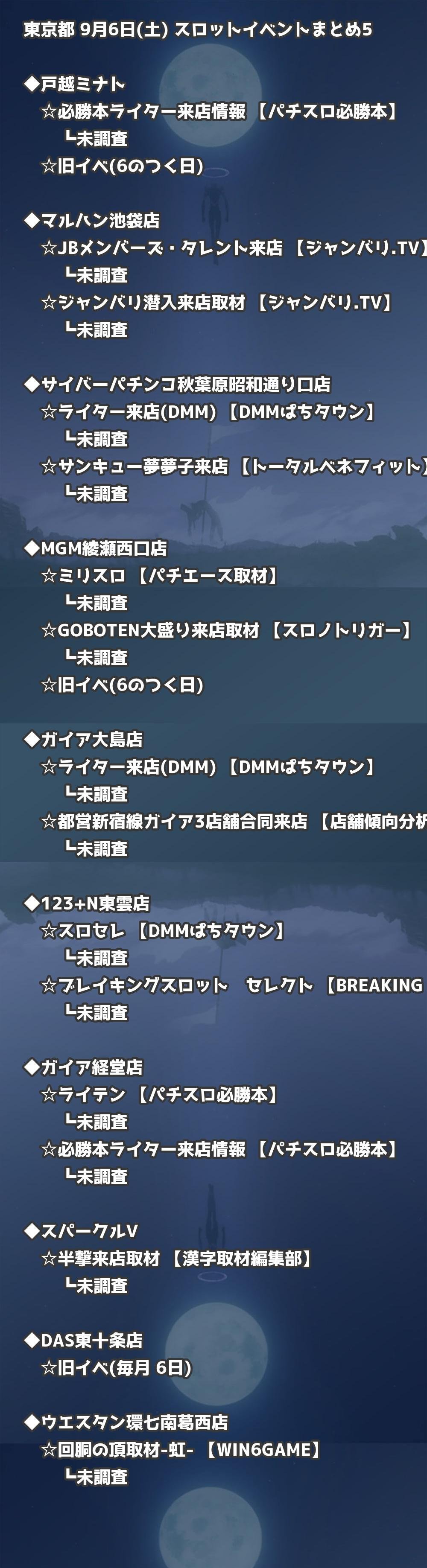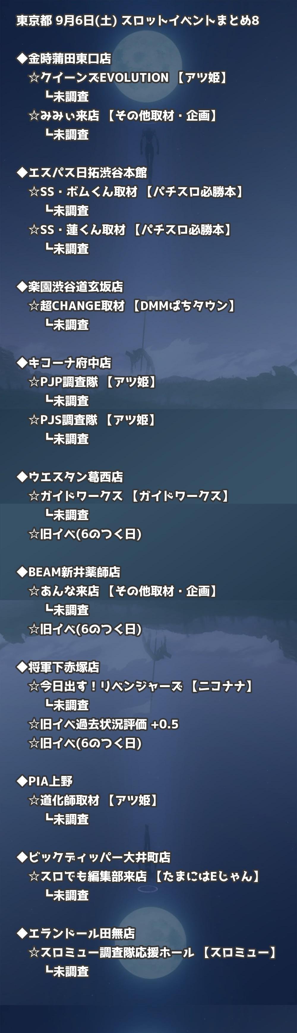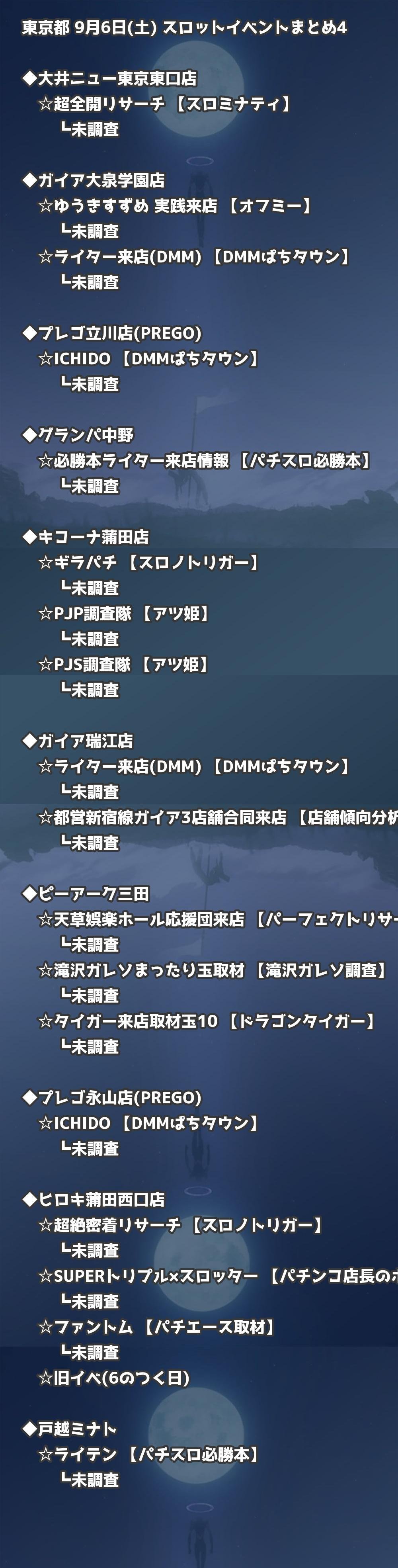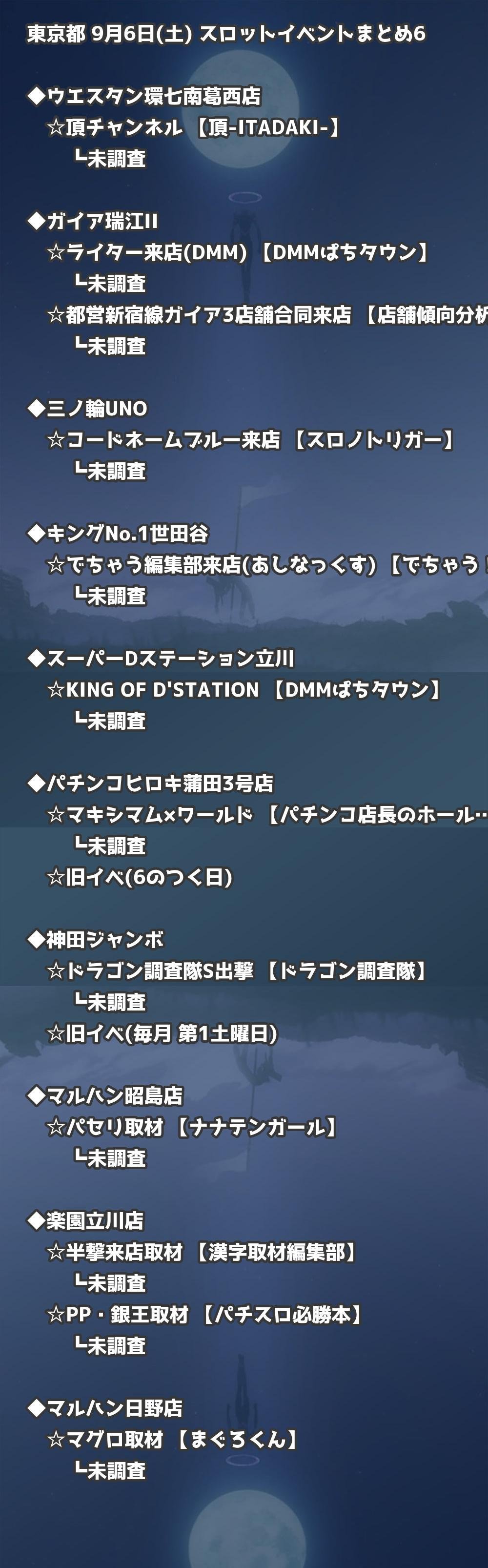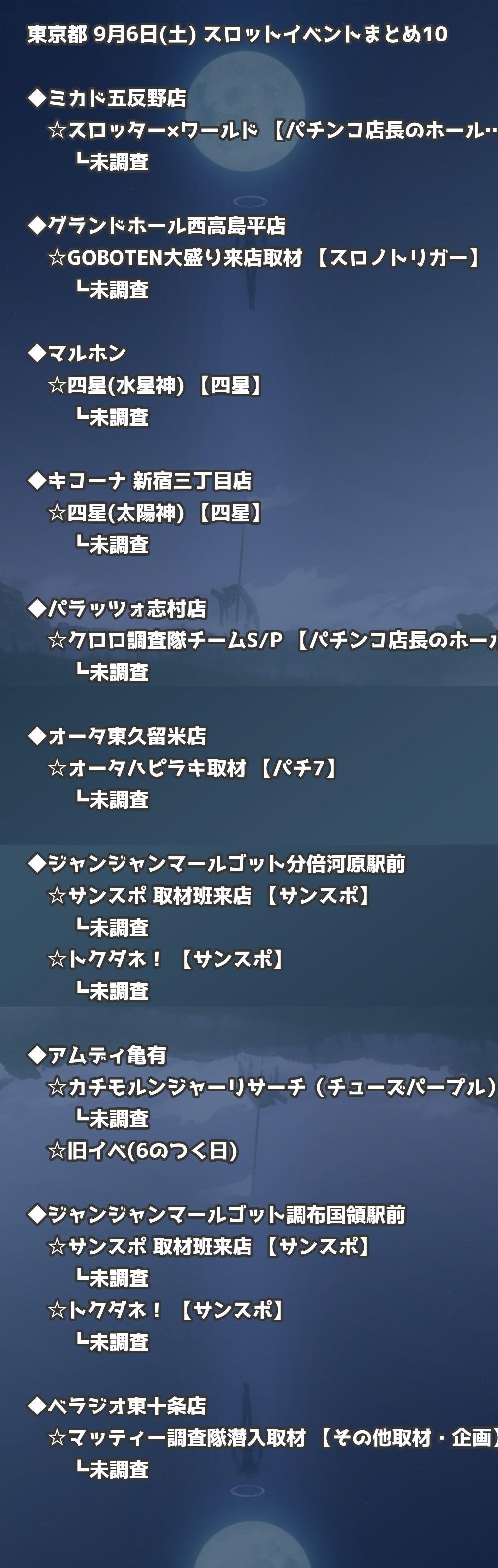 📊 東京都 9月6日(土) 勝てるパチンコ・スロット取材店舗一覧|おすすめ順