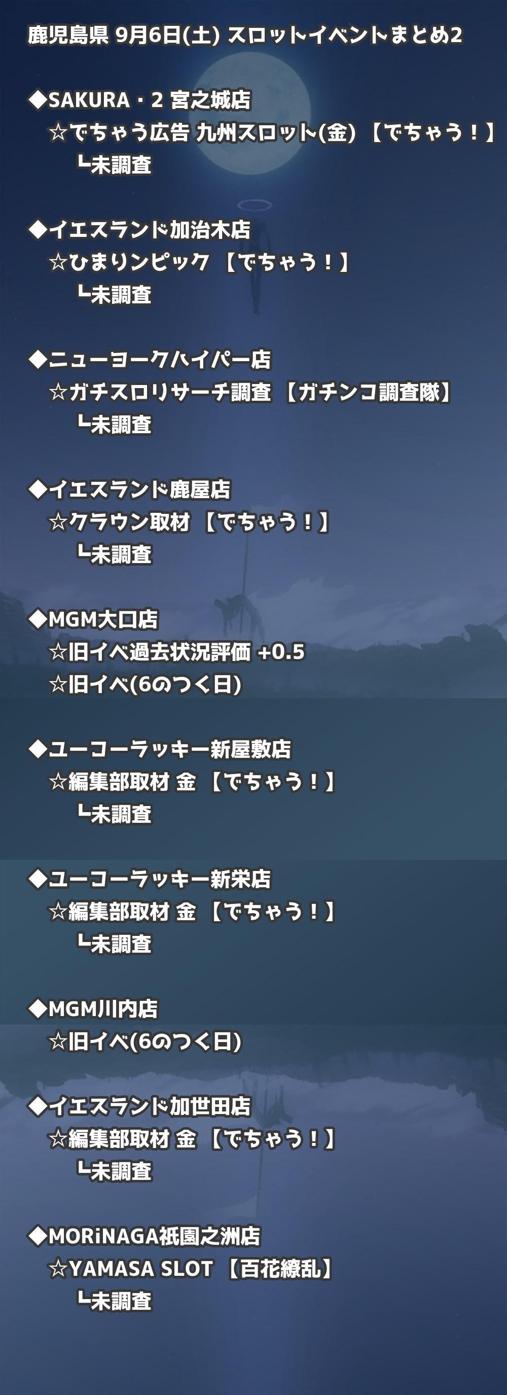 📊 鹿児島県 9月6日(土) 勝てるパチンコ・スロット取材店舗一覧|おすすめ順