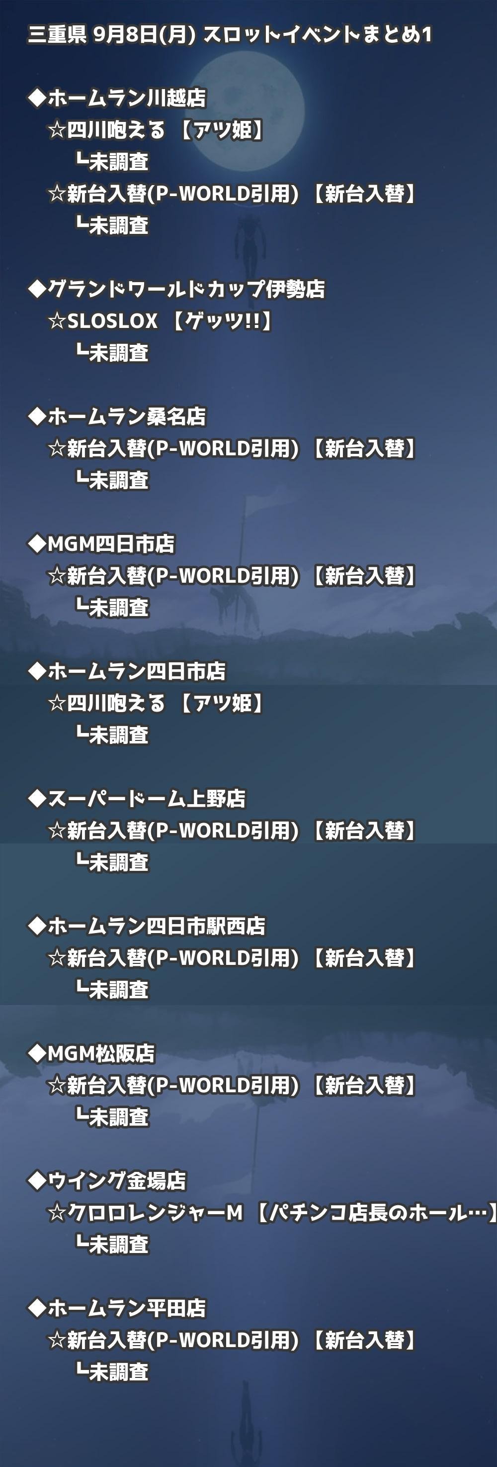 【三重県】9月8日(月) パチンコホールイベント取材まとめ記事です。