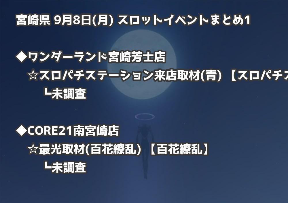 【宮崎県】9月8日(月) パチンコホールイベント取材まとめ記事です。