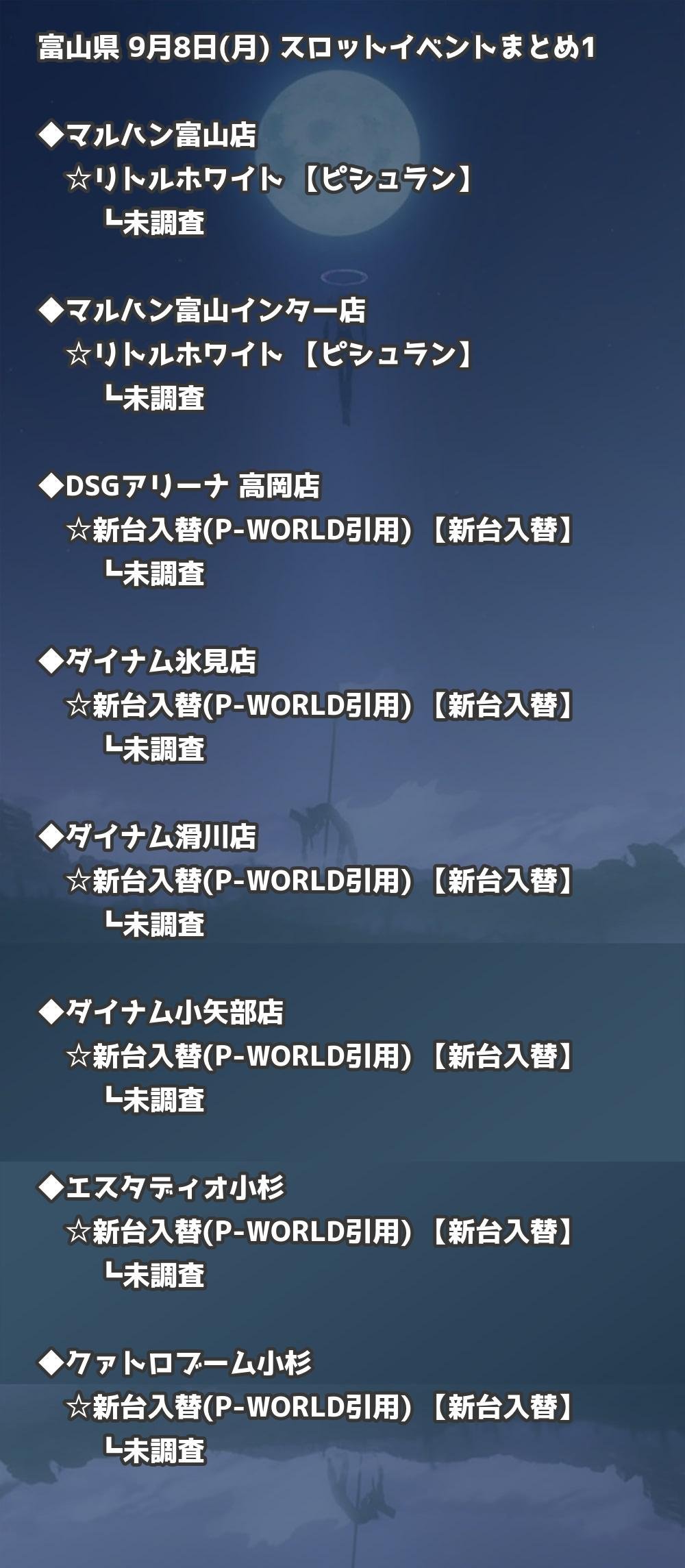 【富山県】9月8日(月) パチンコホールイベント取材まとめ記事です。