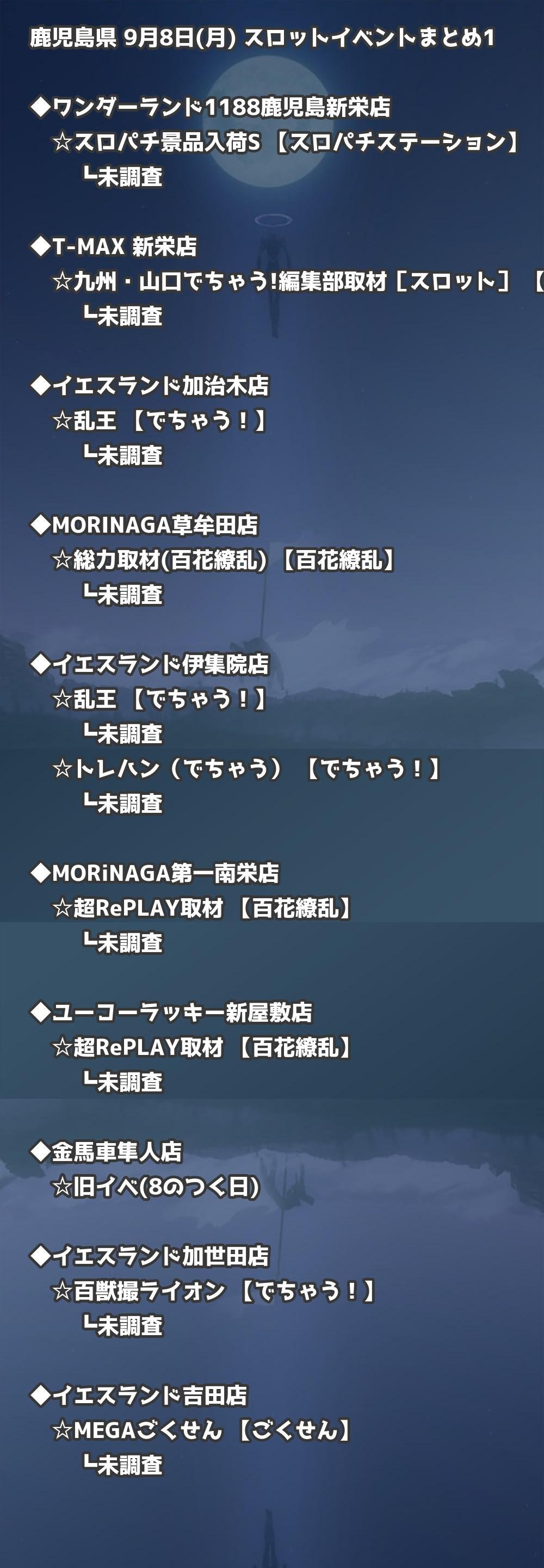 【鹿児島県】9月8日(月) パチンコホールイベント取材まとめ記事です。