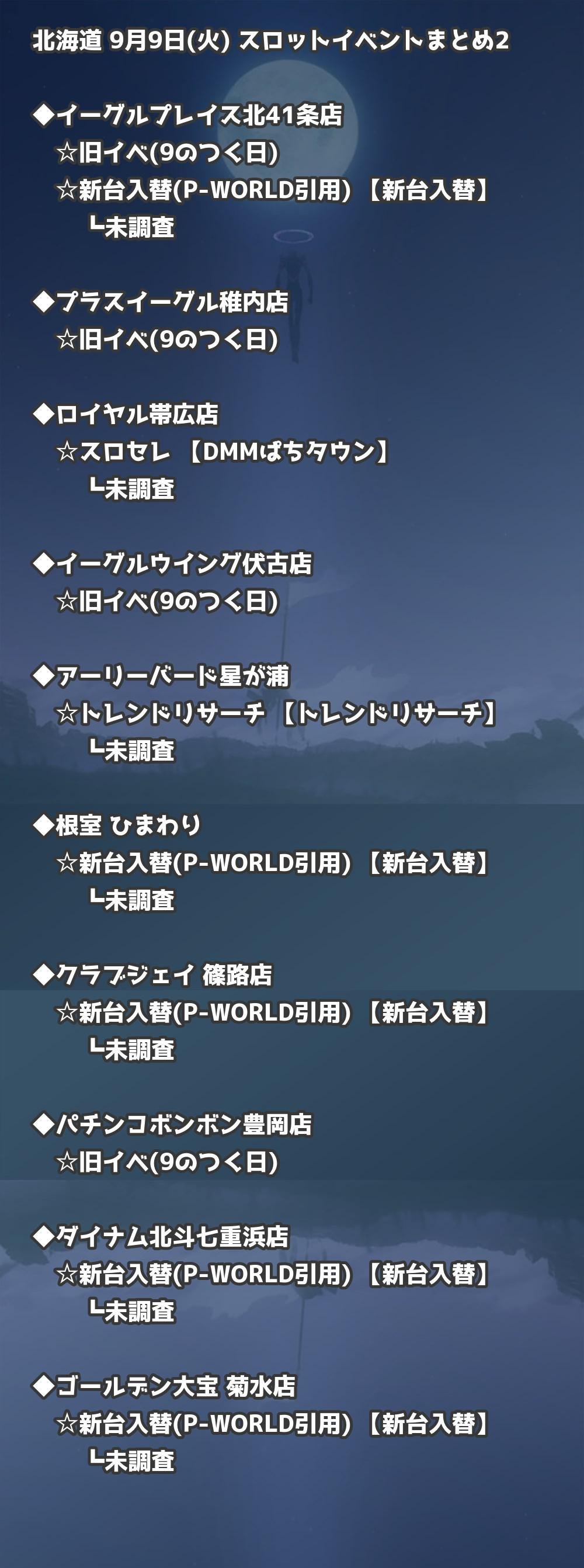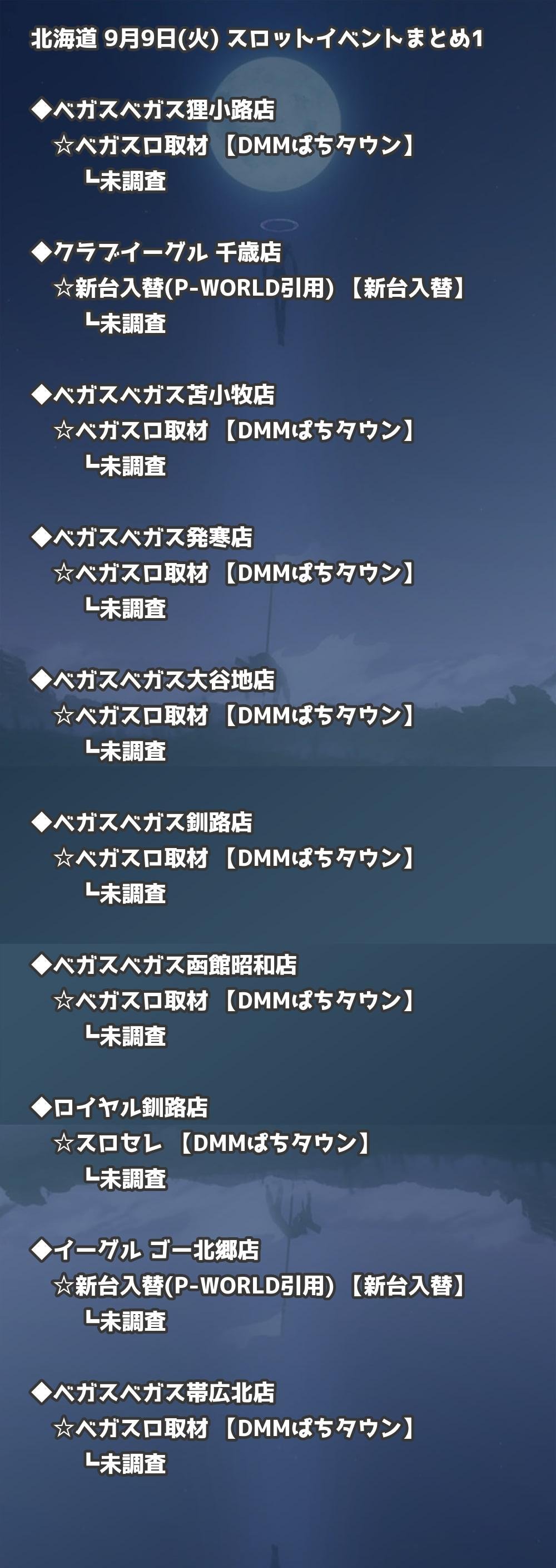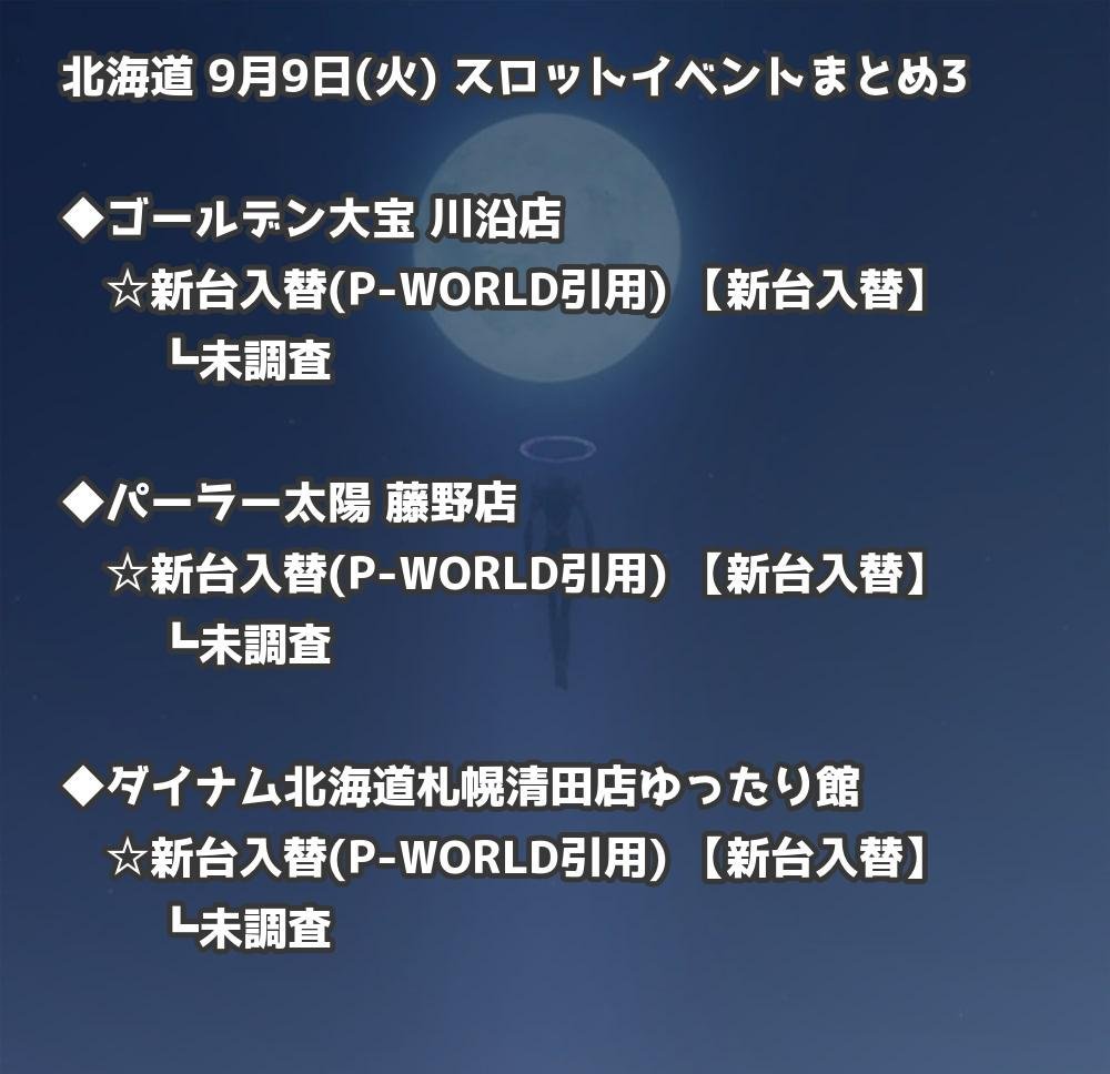 【北海道】9月9日(火) パチンコホールイベント取材まとめ記事です。