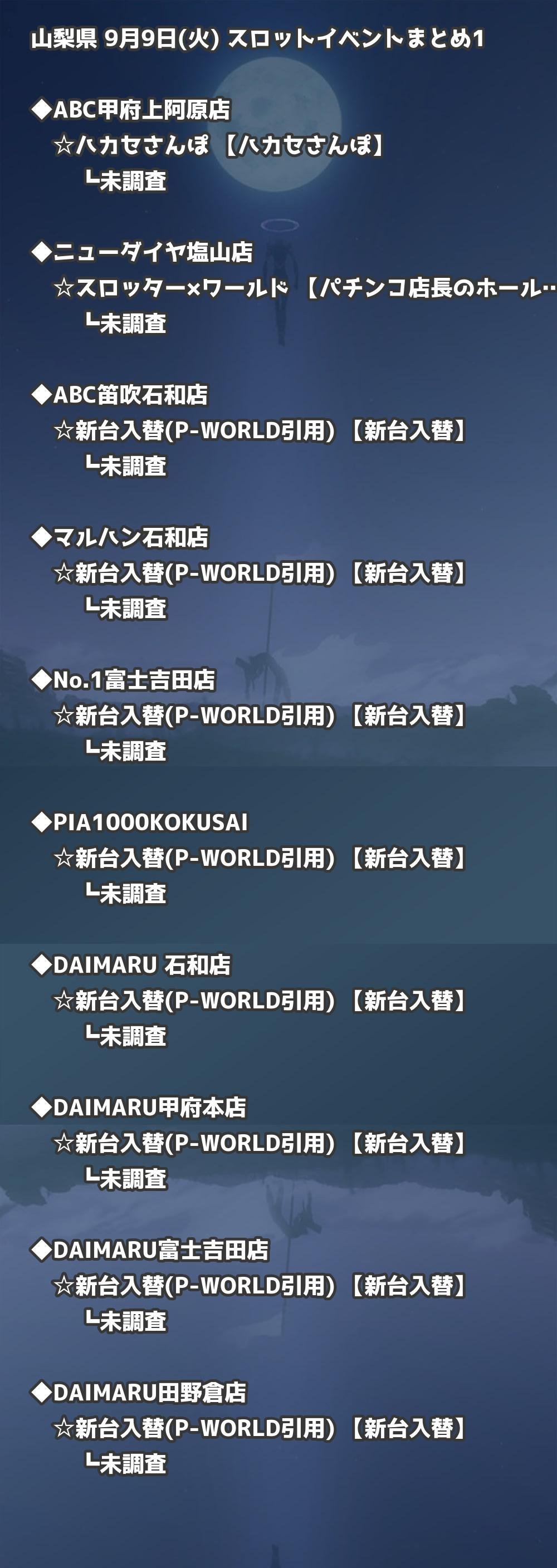 【山梨県】9月9日(火) パチンコホールイベント取材まとめ記事です。