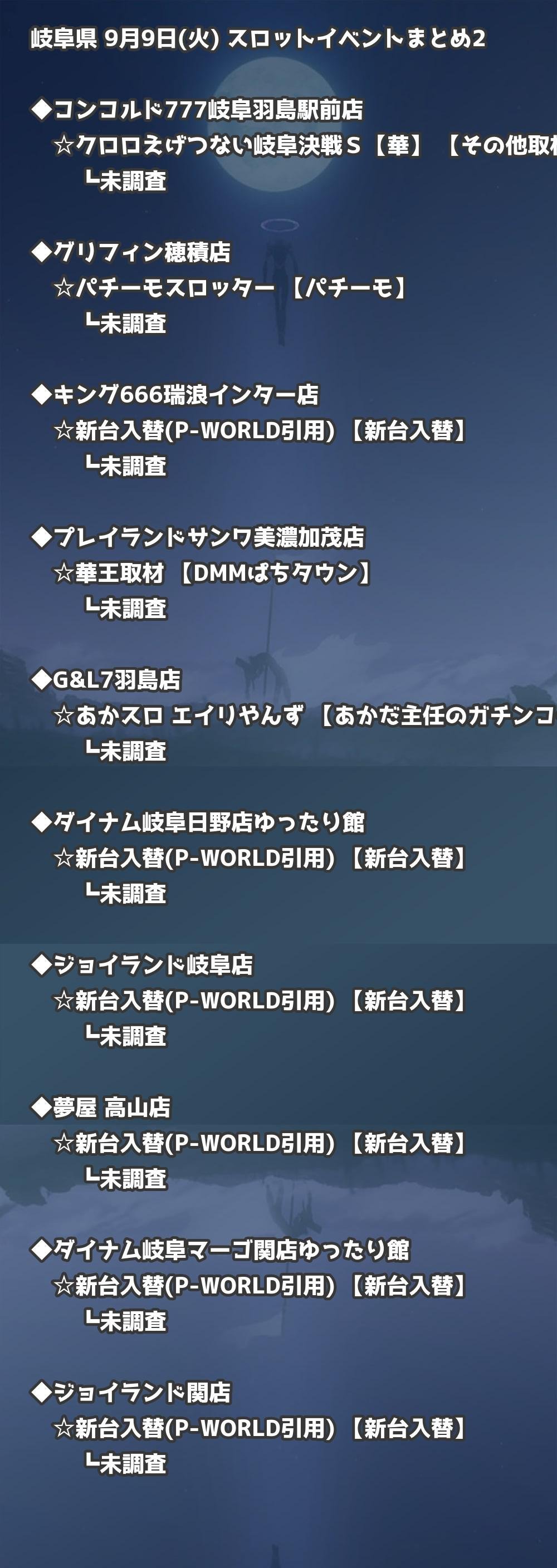 📊 岐阜県 9月9日(火) 勝てるパチンコ・スロット取材店舗一覧|おすすめ順
