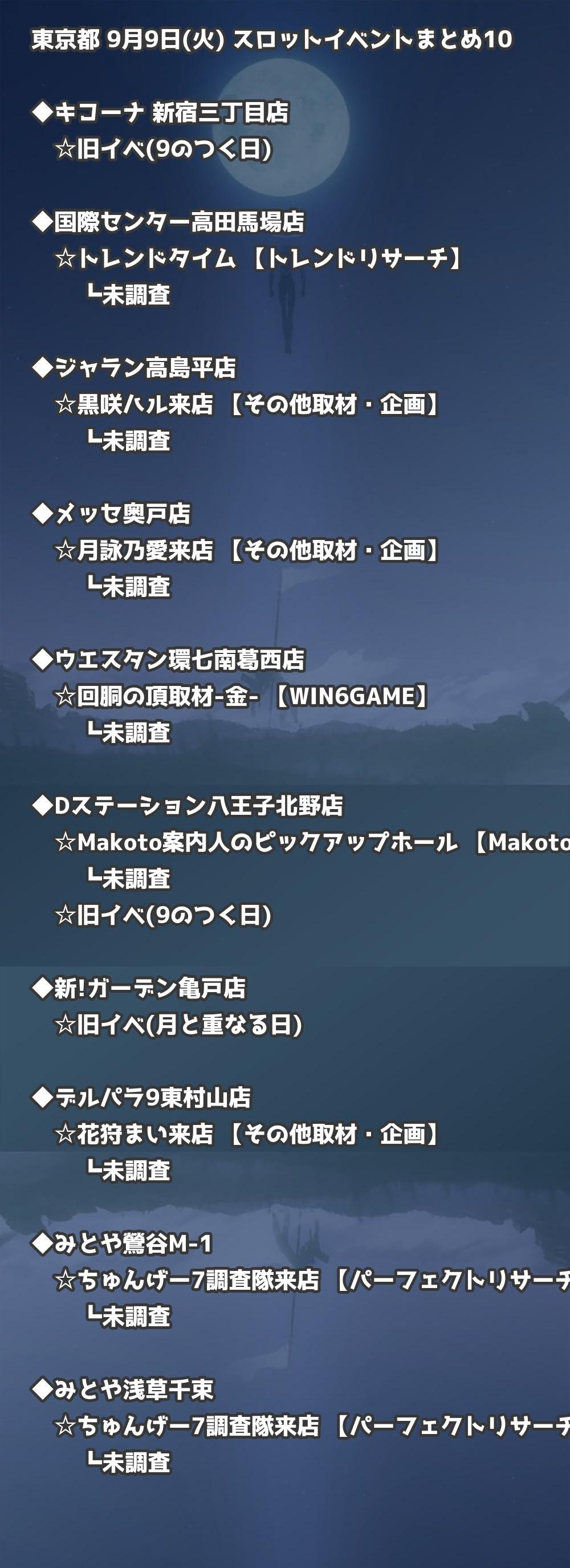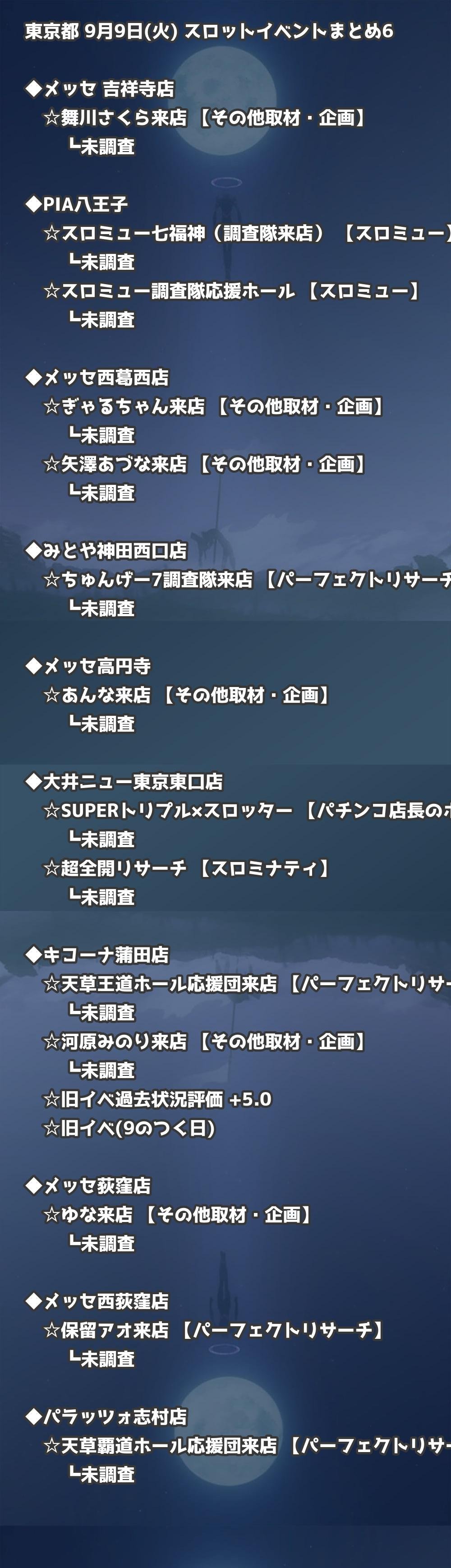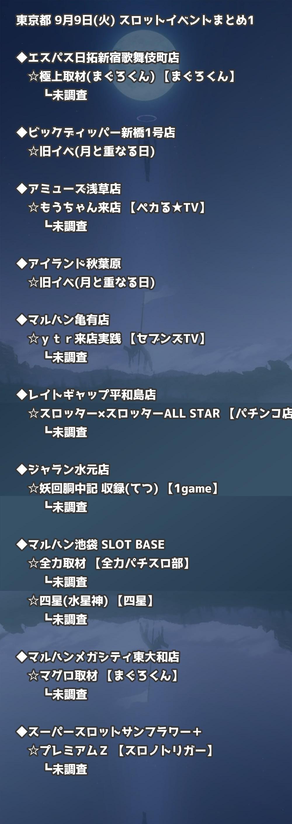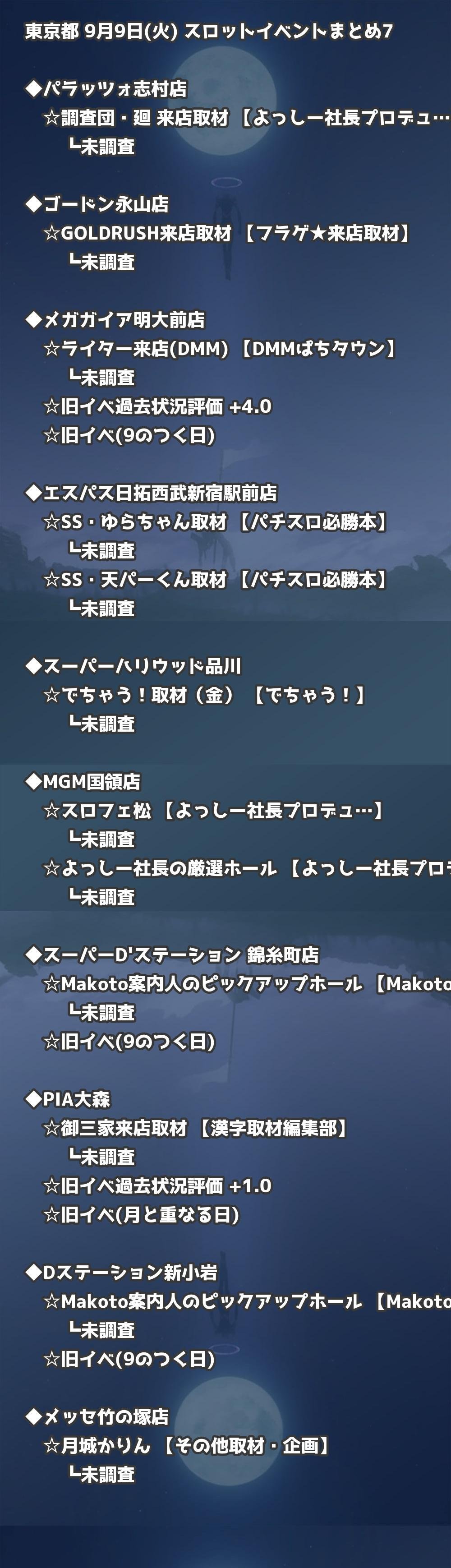 📊 東京都 9月9日(火) 勝てるパチンコ・スロット取材店舗一覧|おすすめ順