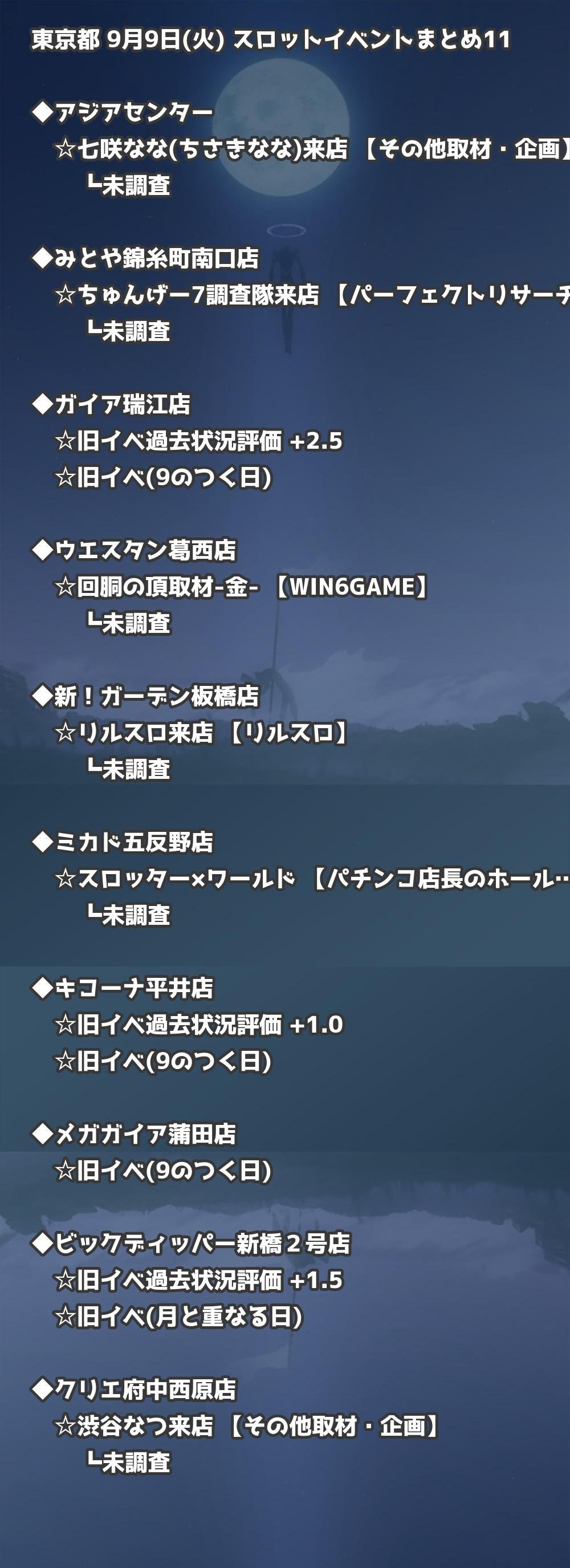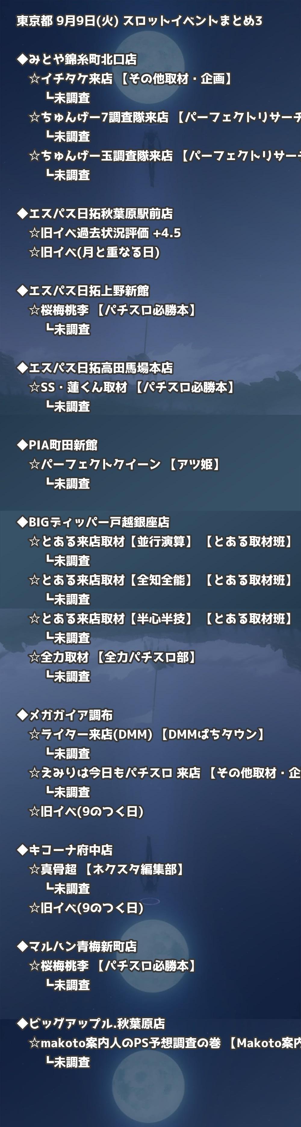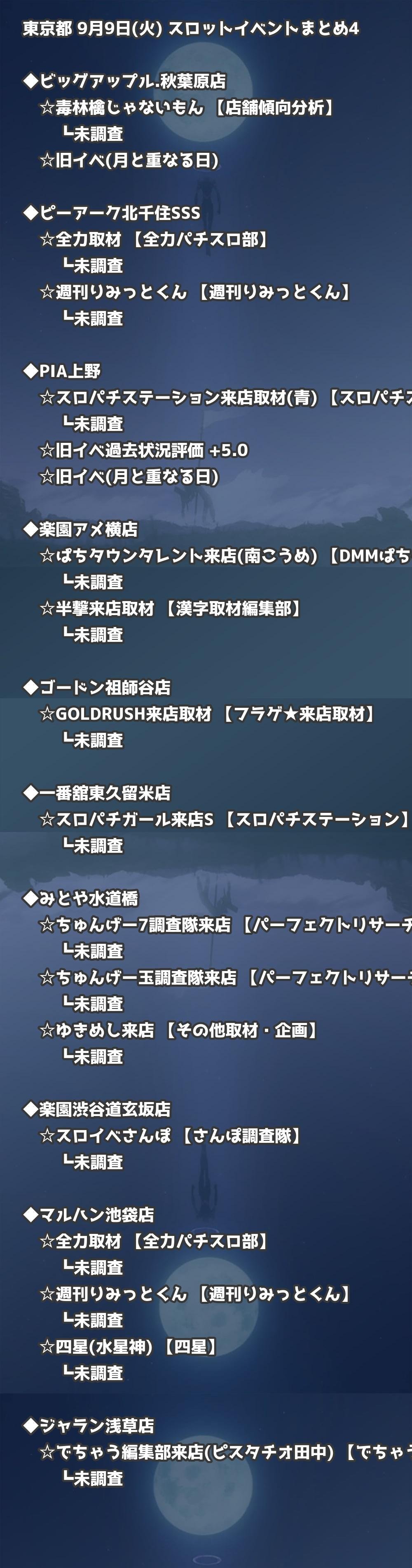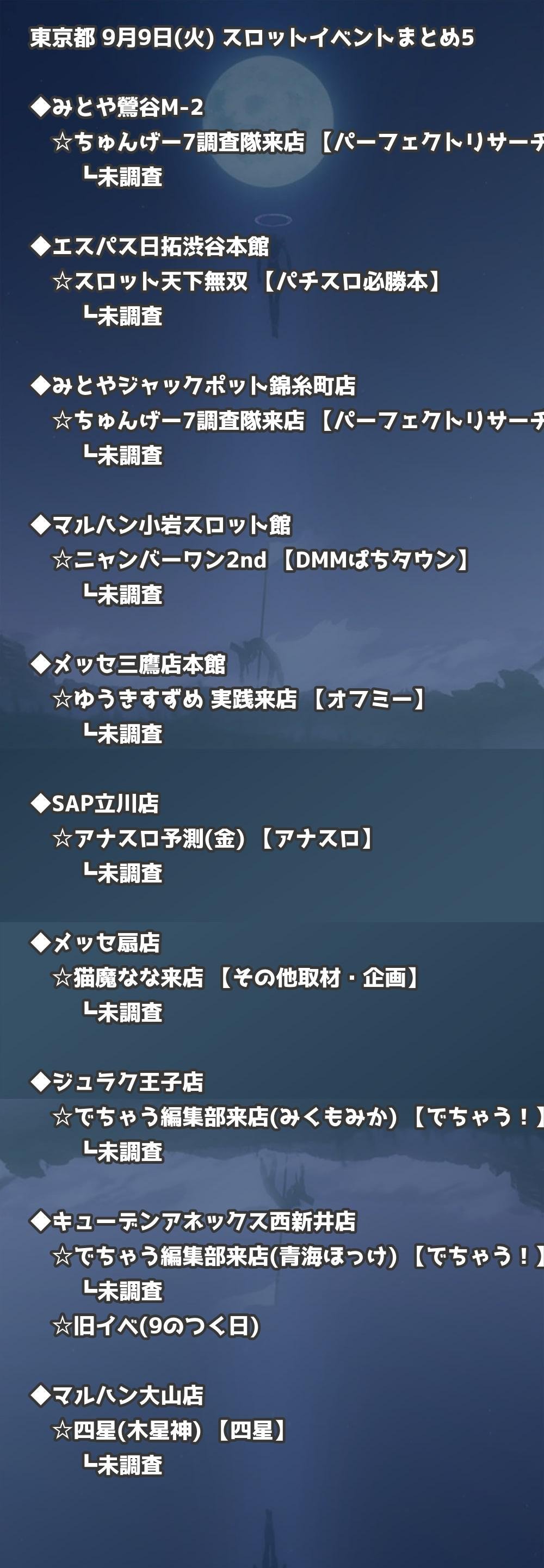 📊 東京都 9月9日(火) 勝てるパチンコ・スロット取材店舗一覧|おすすめ順