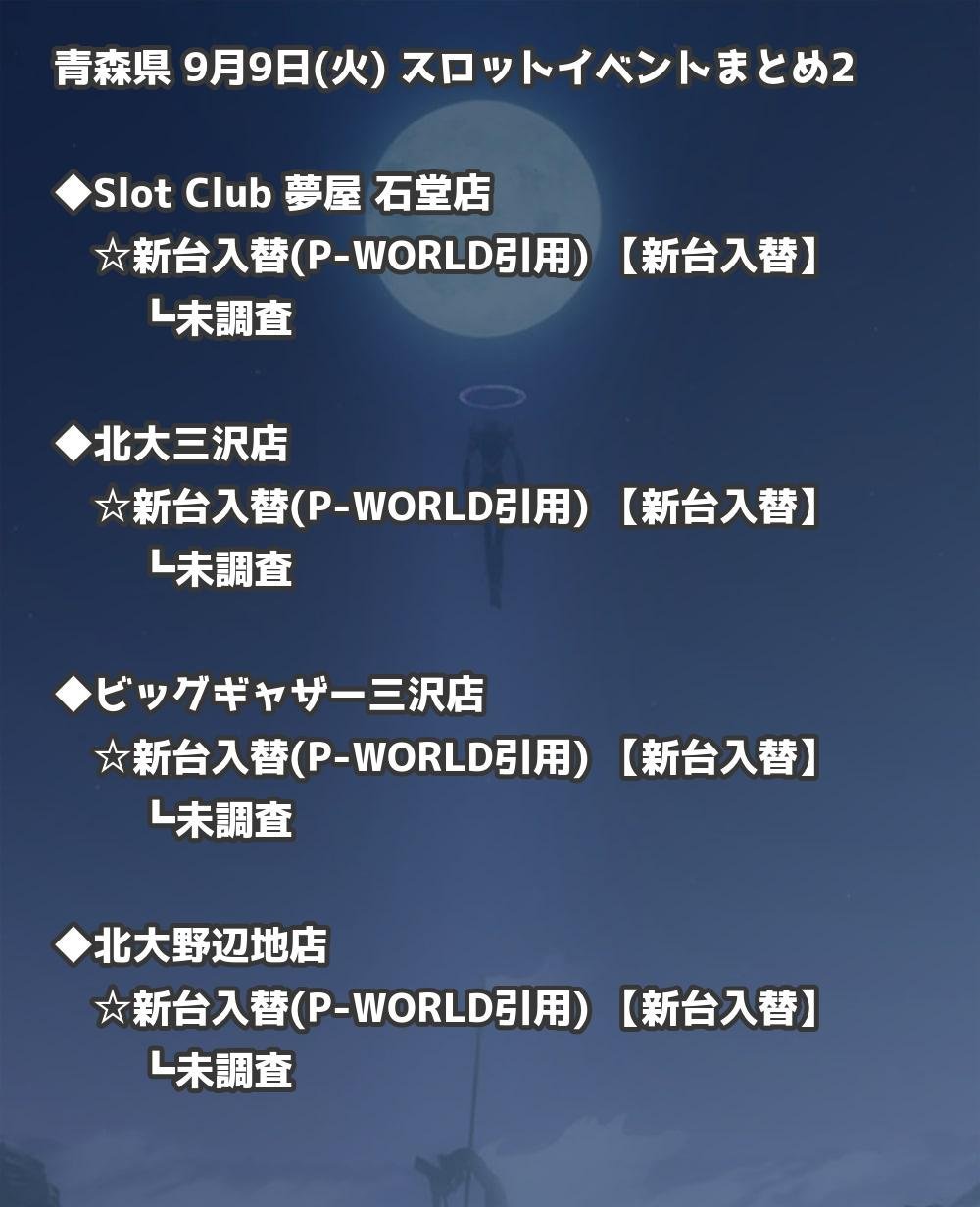 【青森県】9月9日(火) パチンコホールイベント取材まとめ記事です。