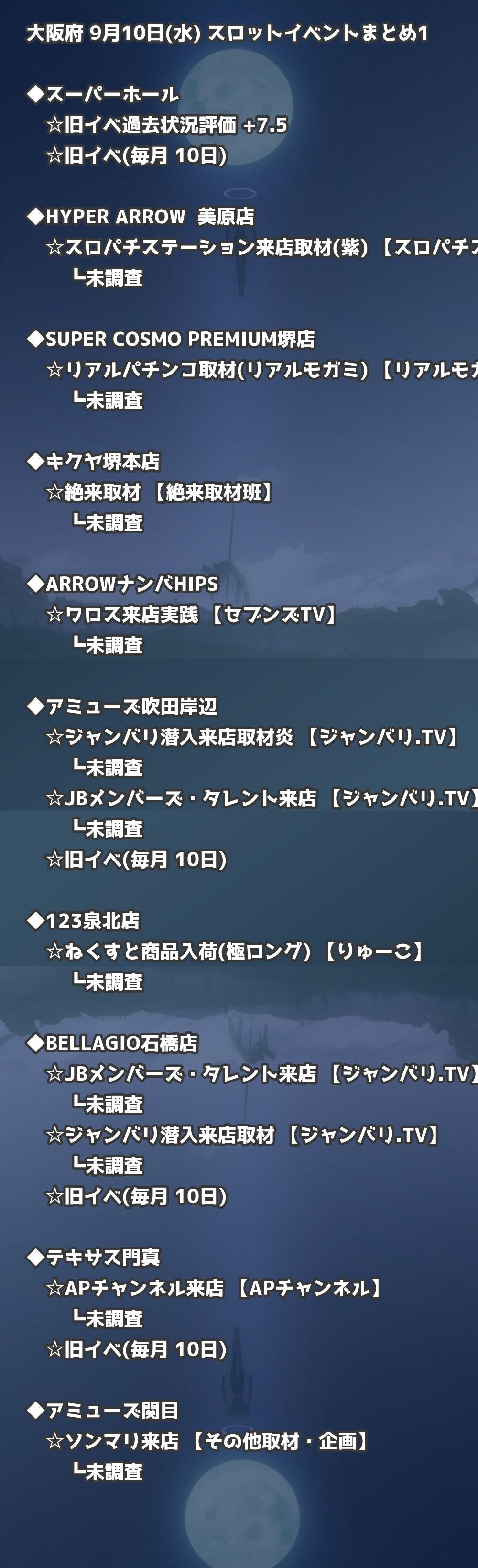📊 大阪府 9月10日(水) 勝てるパチンコ・スロット取材店舗一覧|おすすめ順