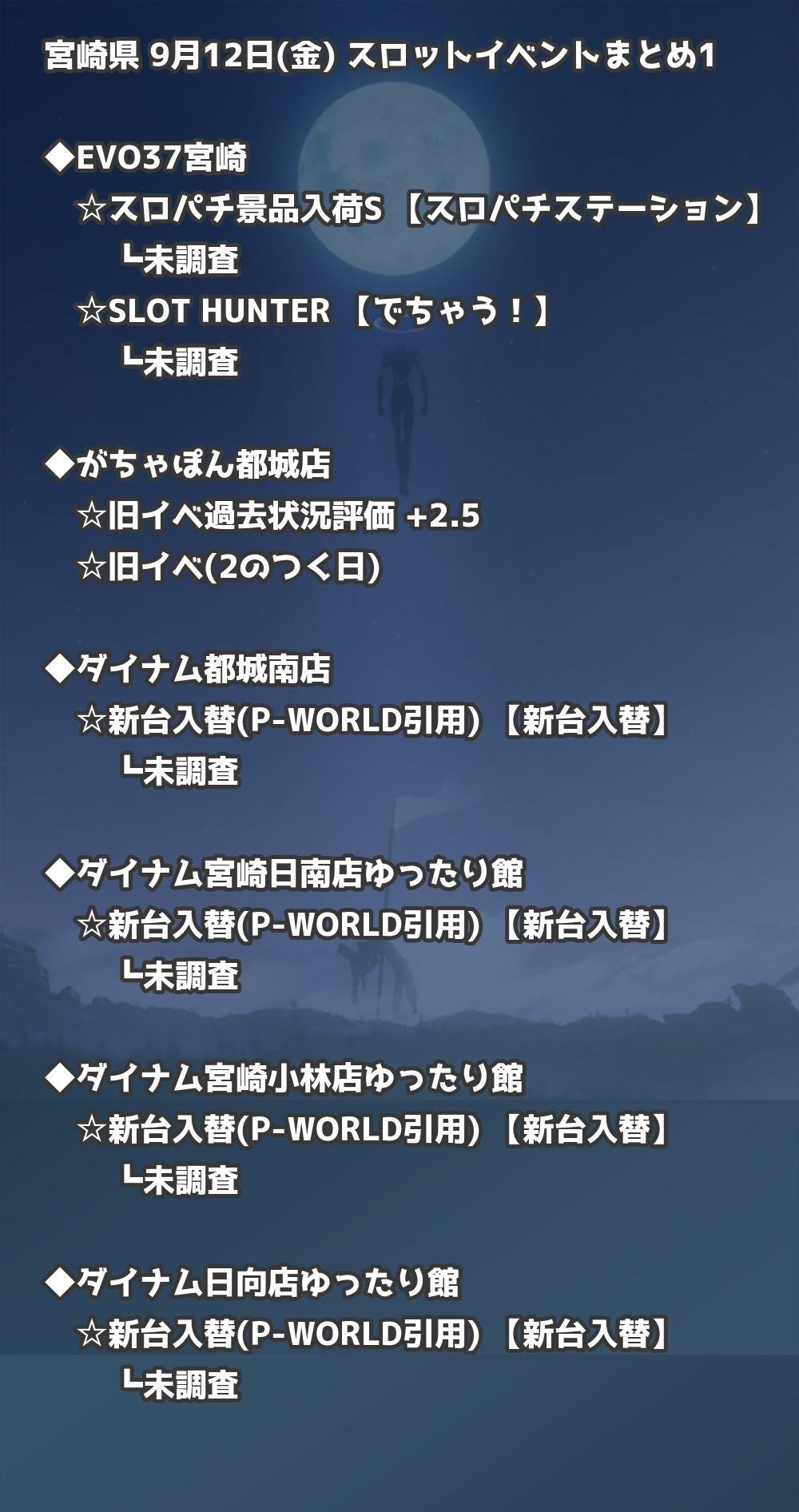 【宮崎県】9月12日(金) パチンコホールイベント取材まとめ記事です。