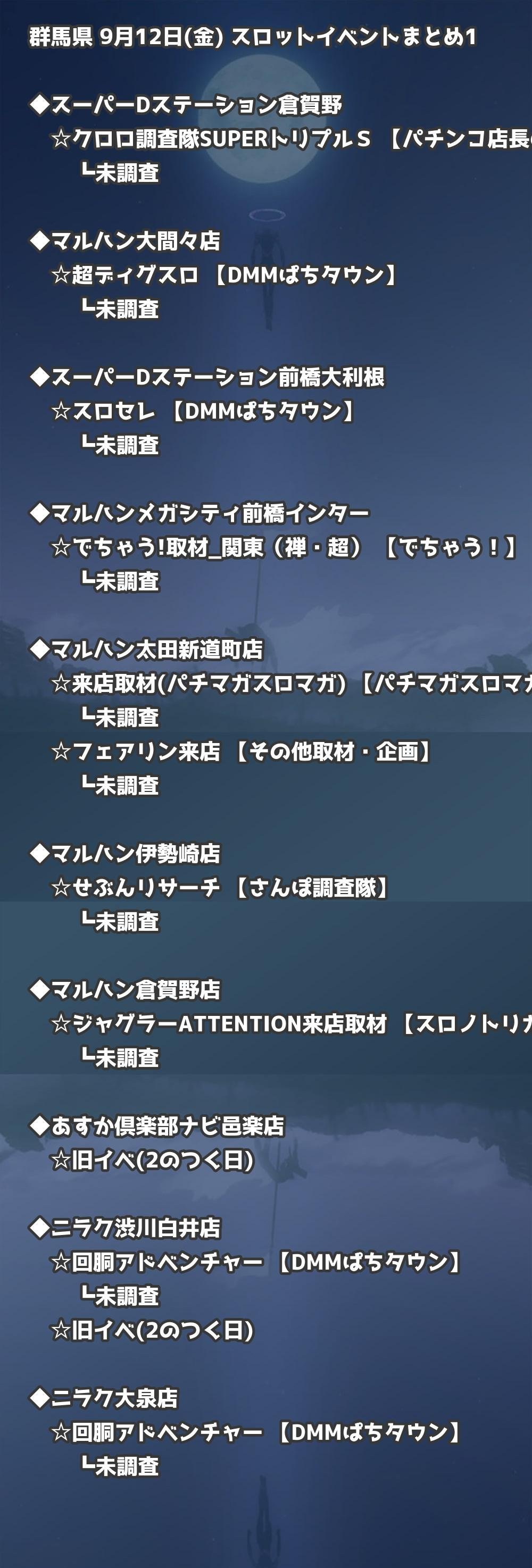 【群馬県】9月12日(金) パチンコホールイベント取材まとめ記事です。