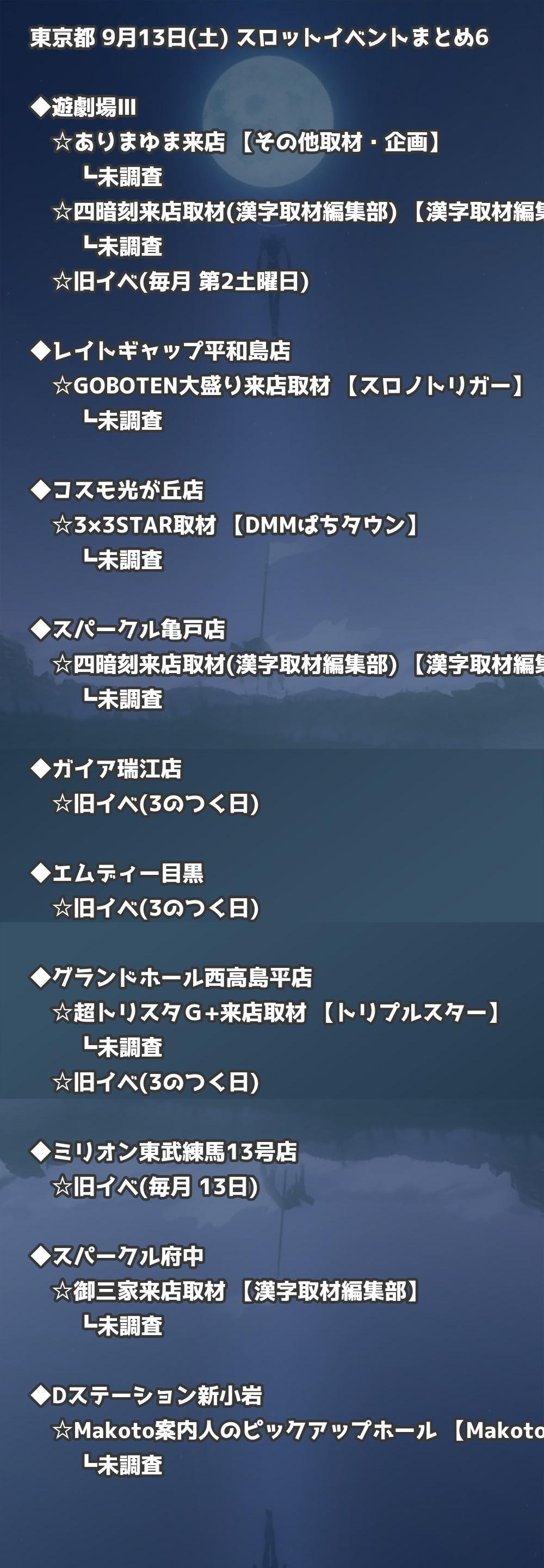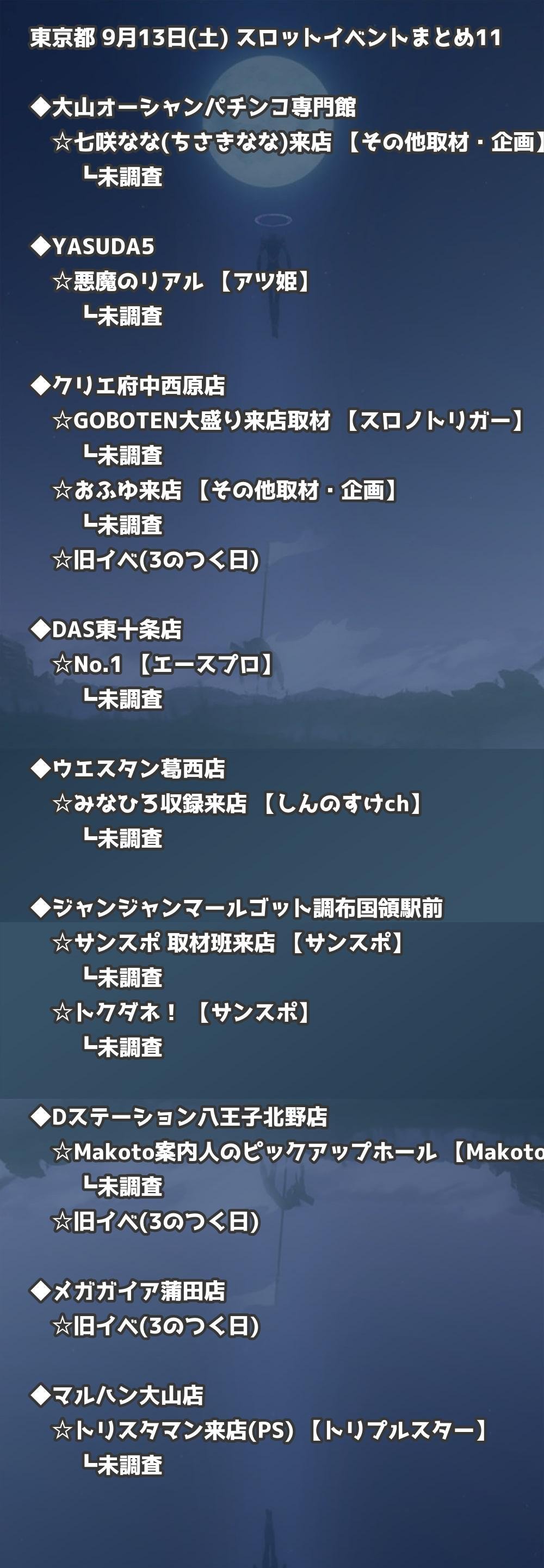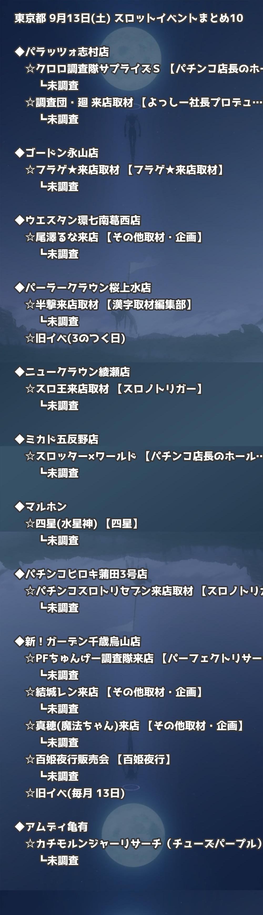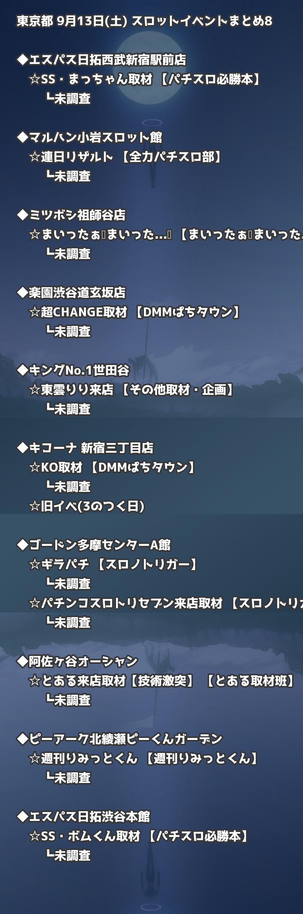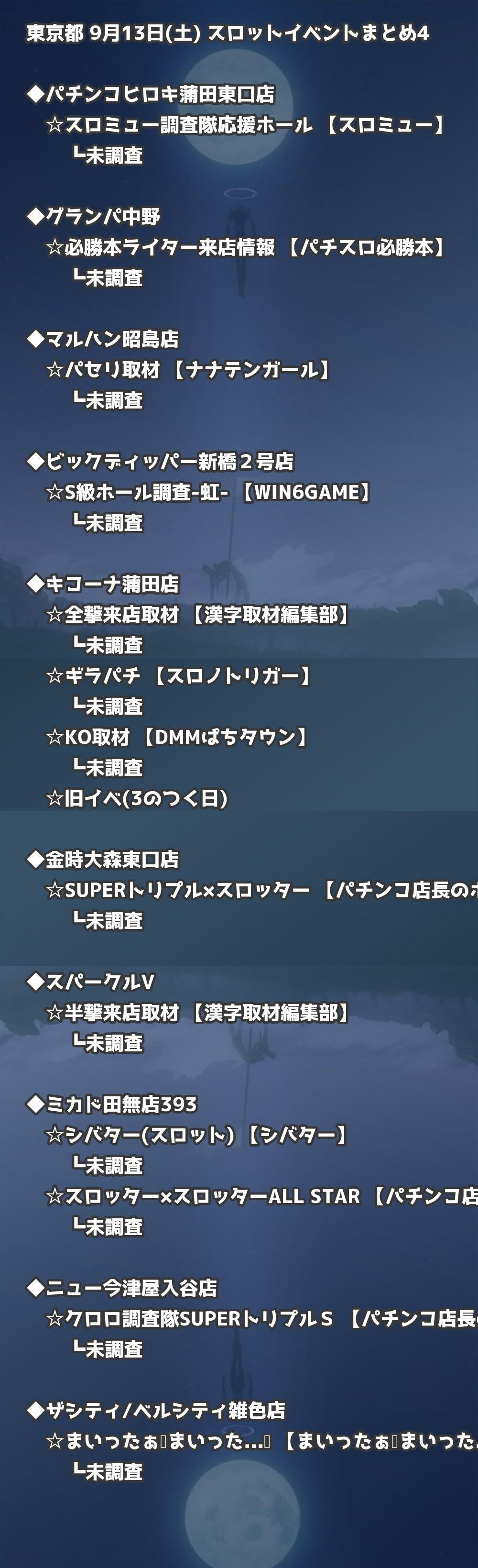 📊 東京都 9月13日(土) 勝てるパチンコ・スロット取材店舗一覧|おすすめ順
