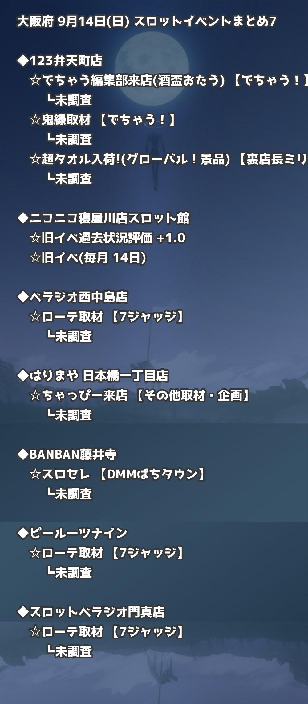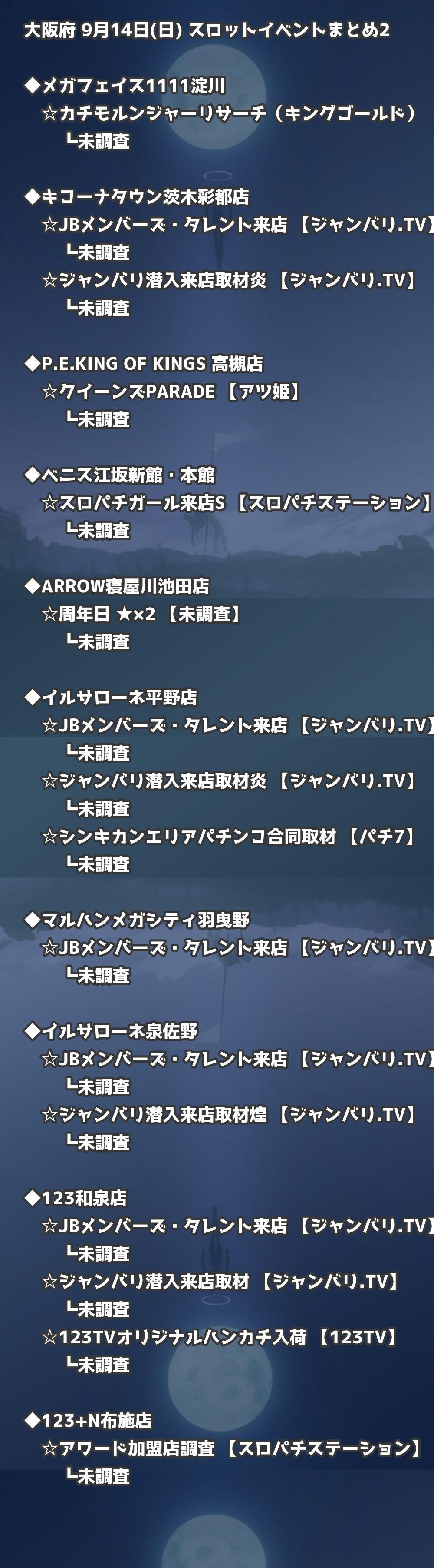 📊 大阪府 9月14日(日) 勝てるパチンコ・スロット取材店舗一覧|おすすめ順