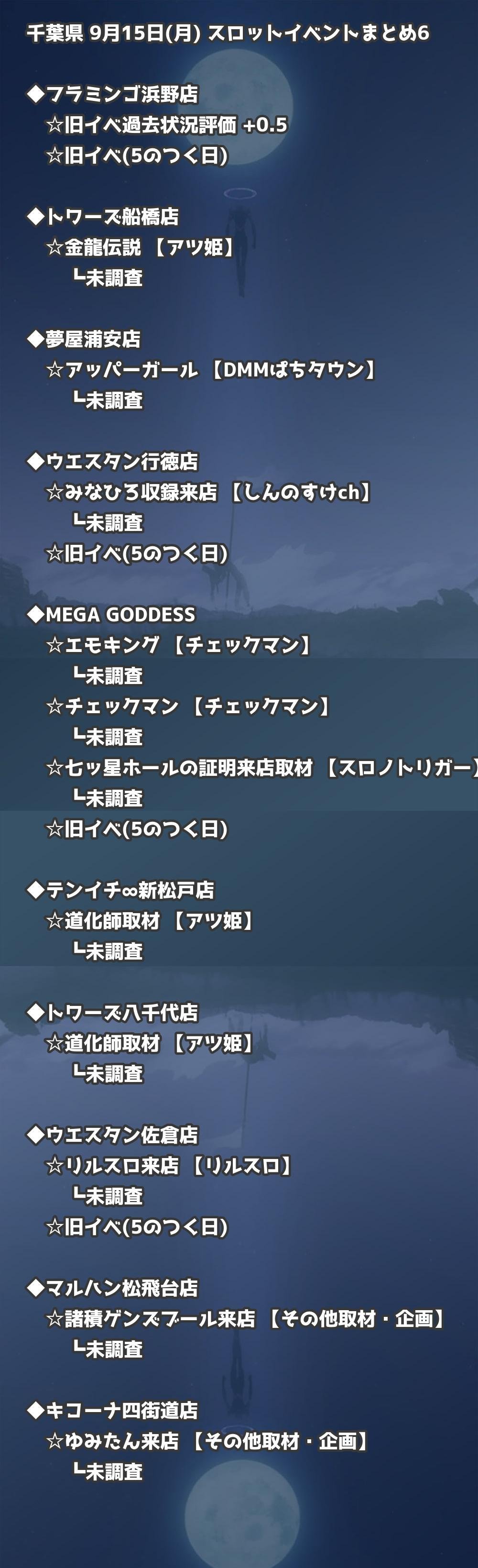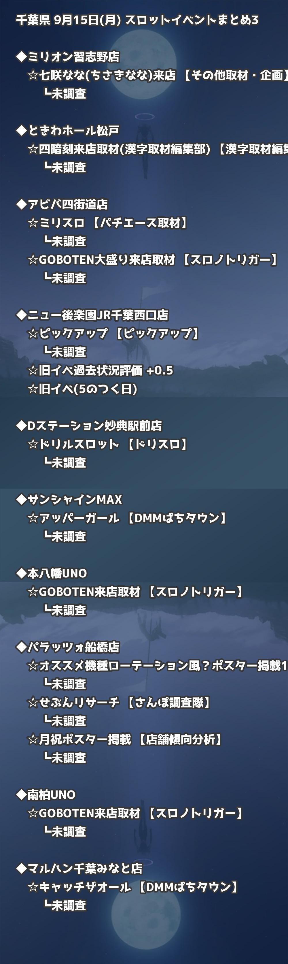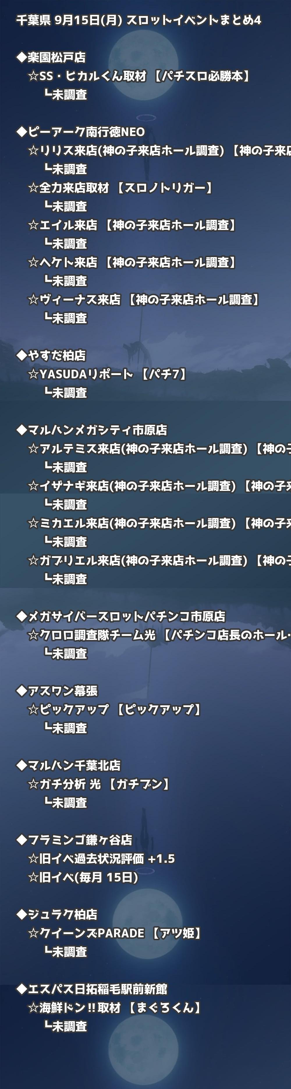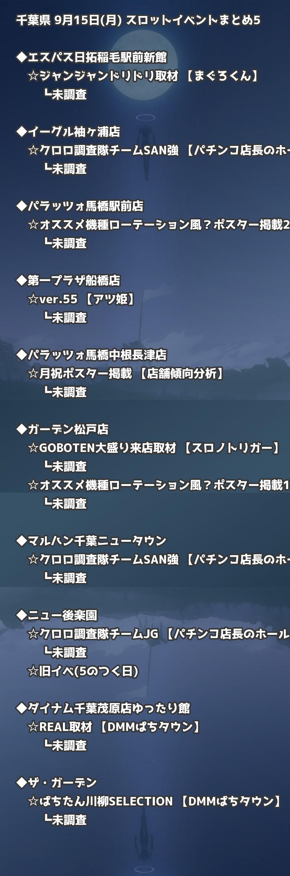 📊 千葉県 9月15日(月) 勝てるパチンコ・スロット取材店舗一覧|おすすめ順