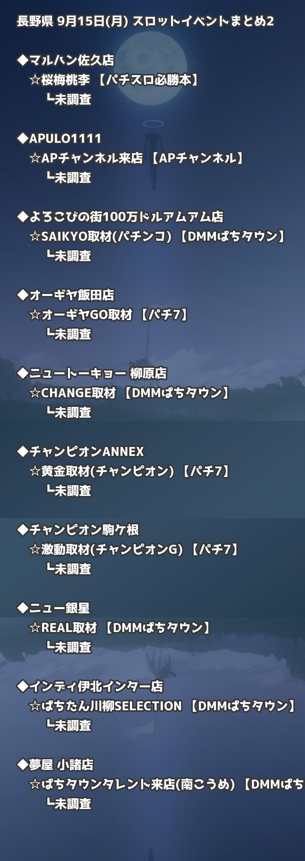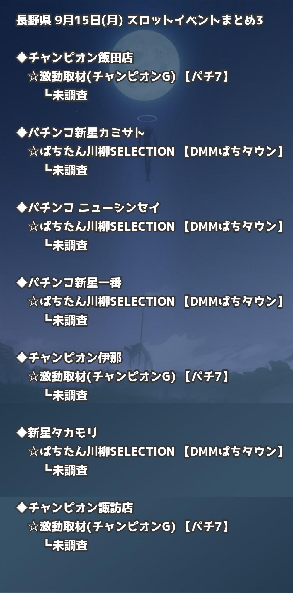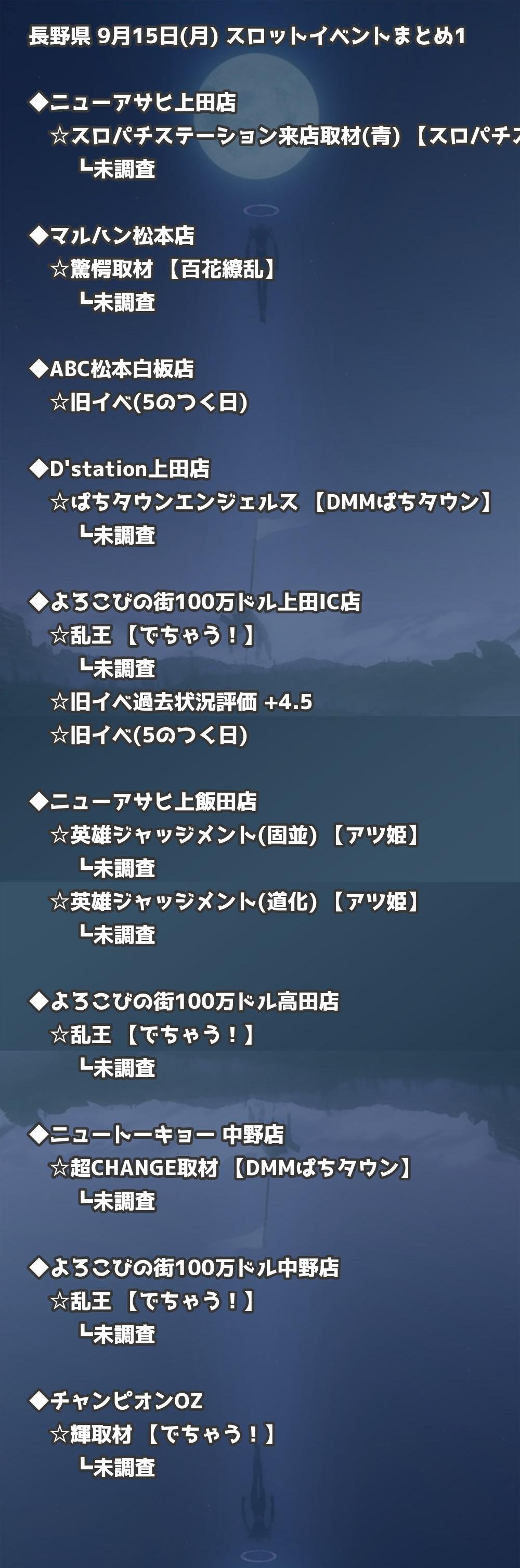 📊 長野県 9月15日(月) 勝てるパチンコ・スロット取材店舗一覧|おすすめ順