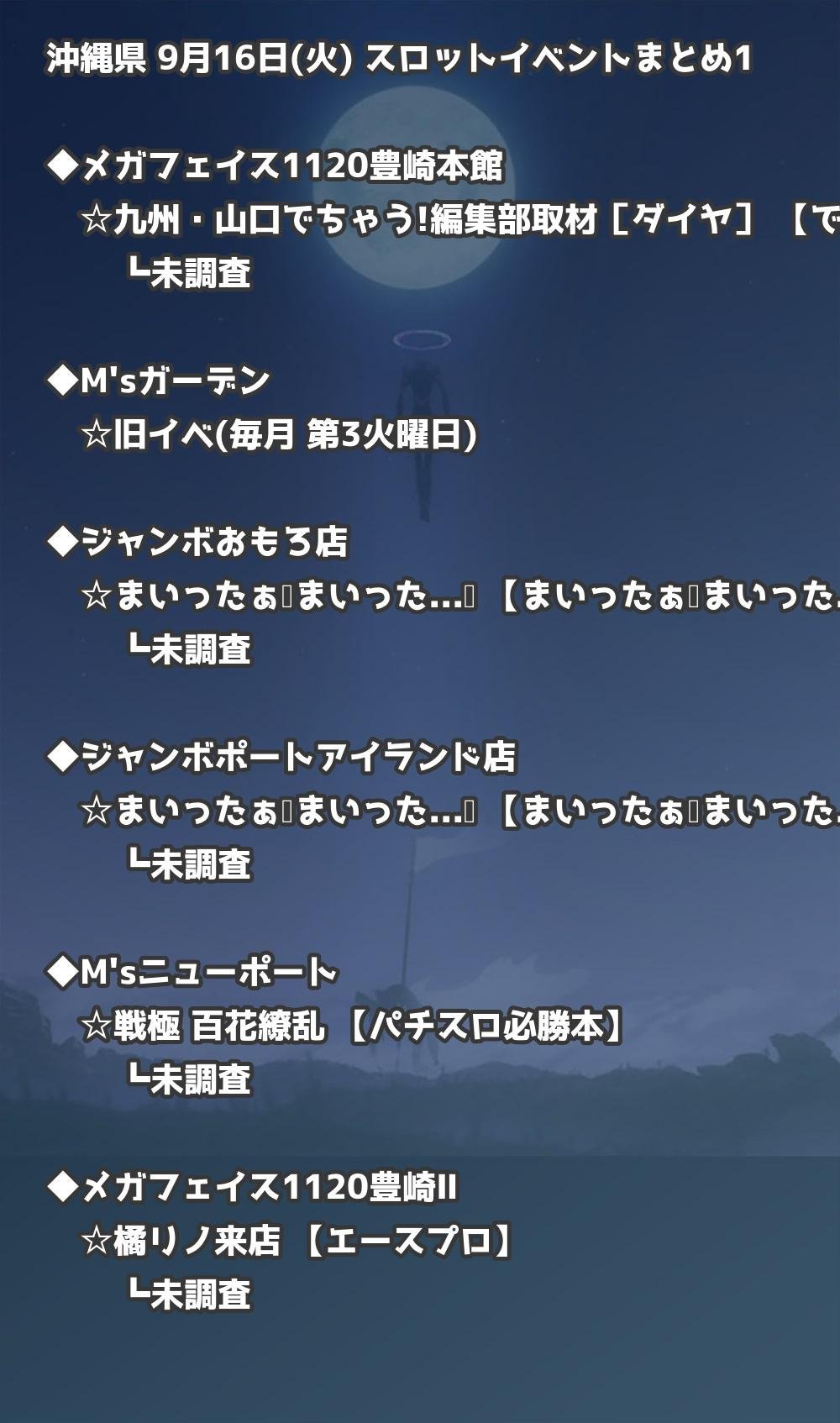 【沖縄県】9月16日(火) パチンコホールイベント取材まとめ記事です。