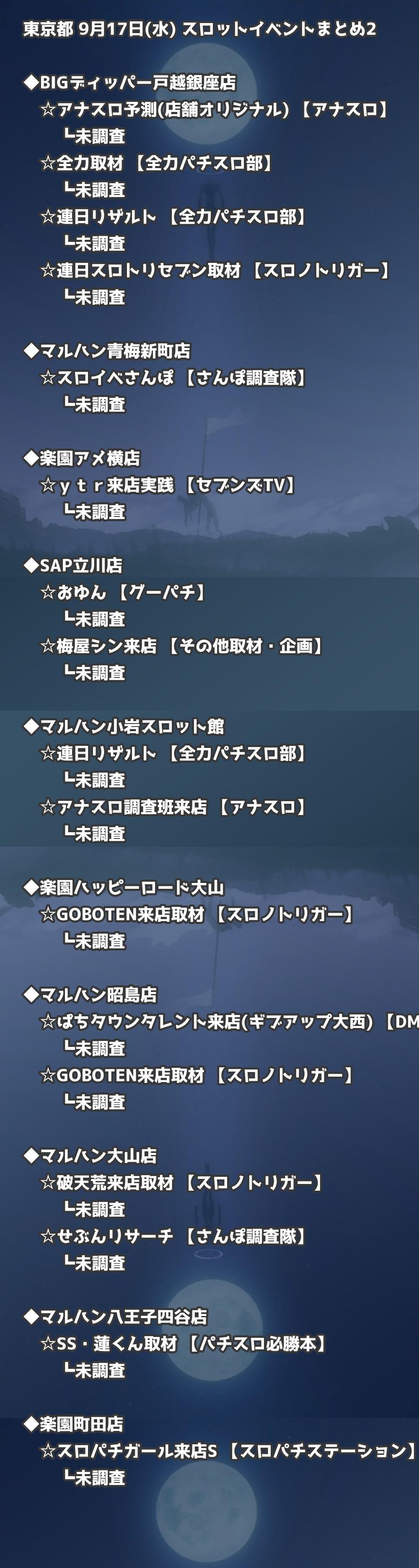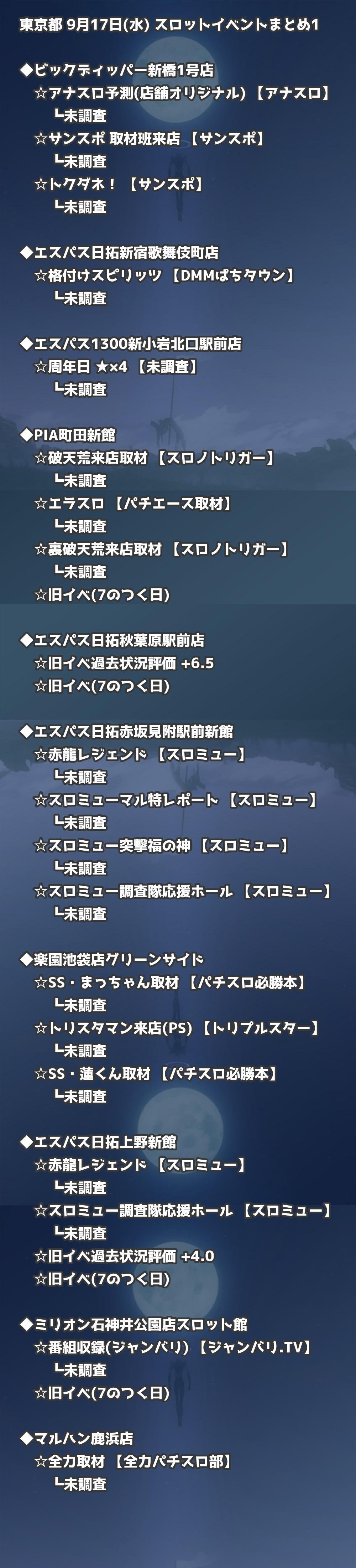 📊 東京都 9月17日(水) 勝てるパチンコ・スロット取材店舗一覧|おすすめ順