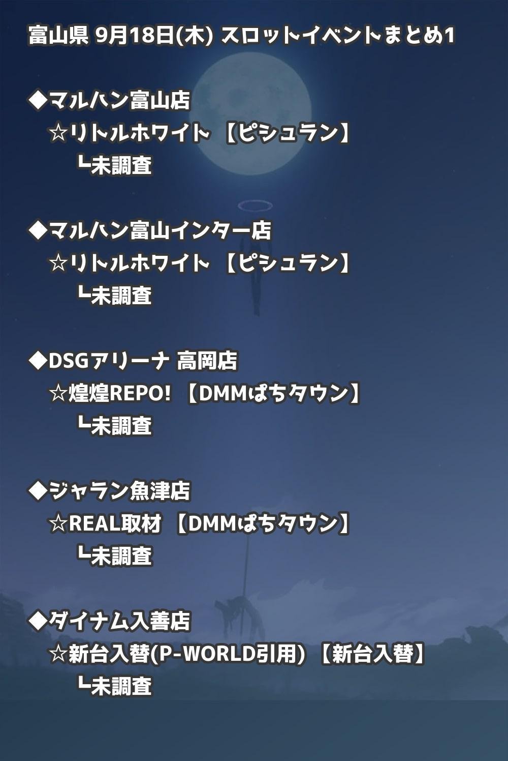 【富山県】9月18日(木) パチンコホールイベント取材まとめ記事です。
